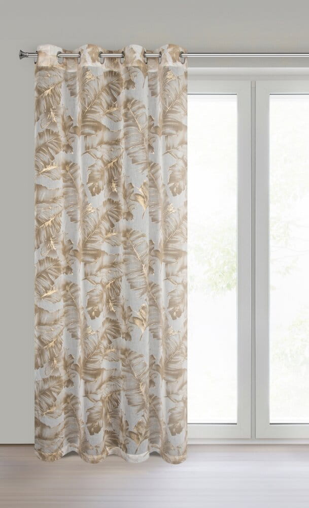 Zasłona gotowa z nadrukiem błyszczącym szerokość: 140 cm, długość: 250 cm, kolor: beżowy, Gramatura: 70 GSM, Skład: 100% poliester