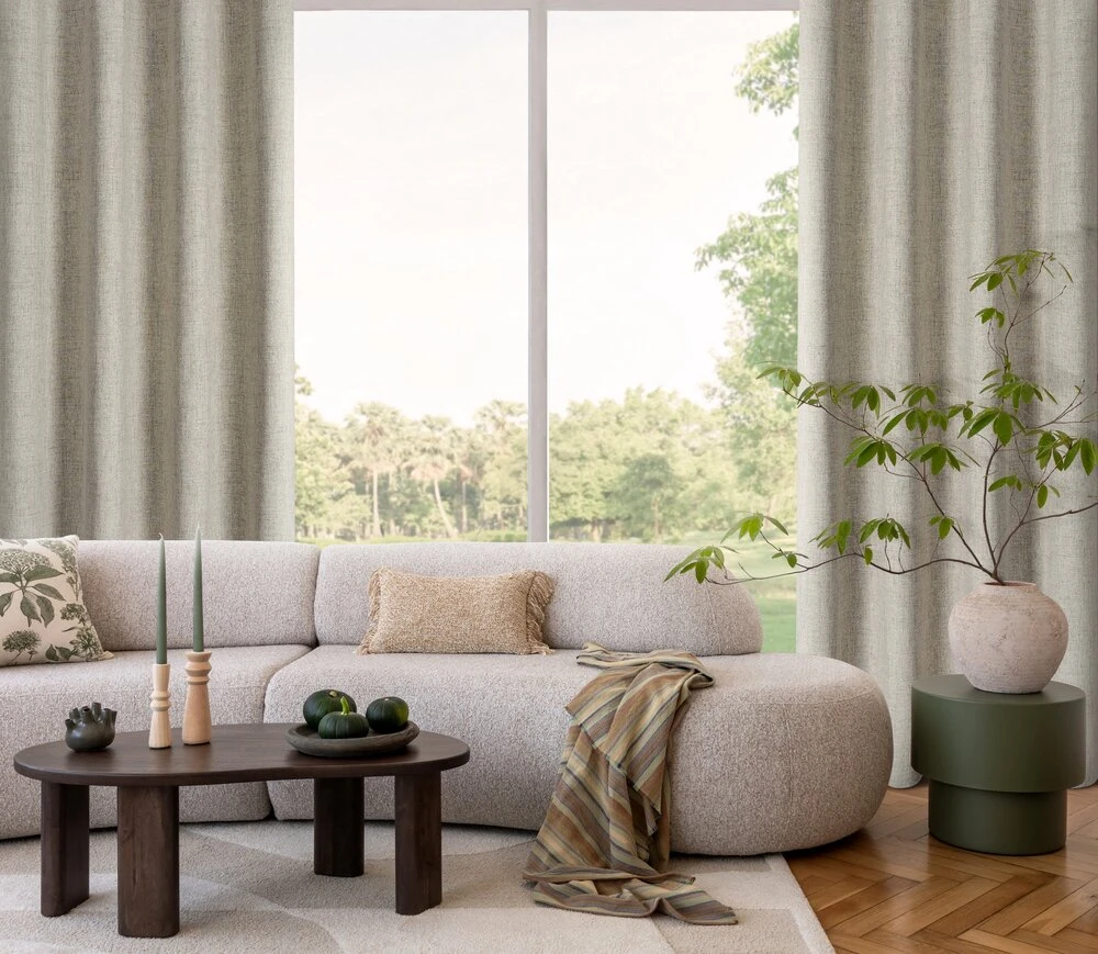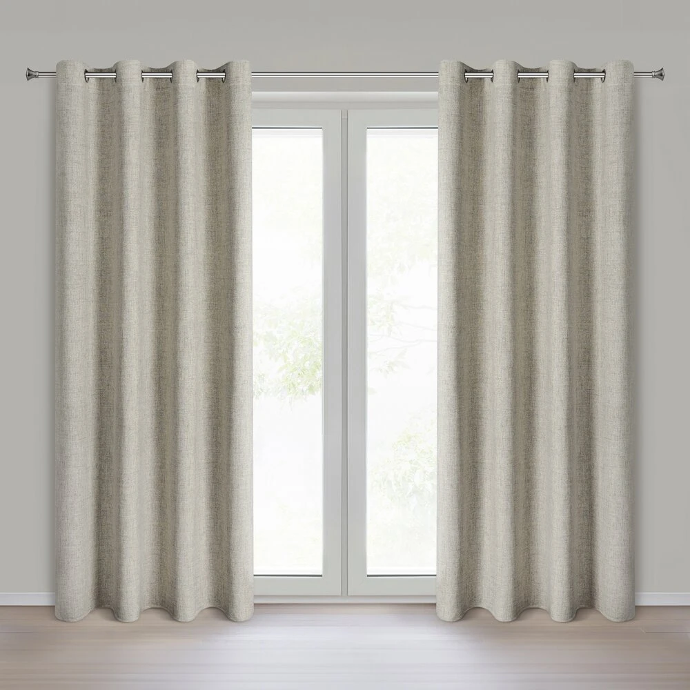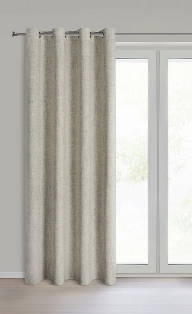 Zasłona gotowa o naturalnym splocie szerokość: 140 cm, długość: 250 cm, kolor: ciemnobeżowy, Gramatura: 170 GSM, Skład: 100% poliester