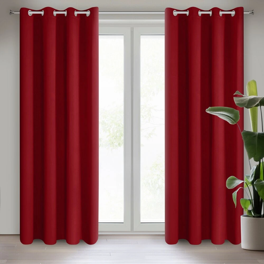 Elegancka zasłona jednokolorowa z tkaniny o wysokim stopniu zaciemnienia. Mięsisty, matowy materiał bez dekoroacji jest uniwersalnym elementem wystroju wnętrza. szerokość: 135 cm, długość: 250 cm, kolor: czerwony, Gramatura: 210 GSM, Skład: 100% poliester