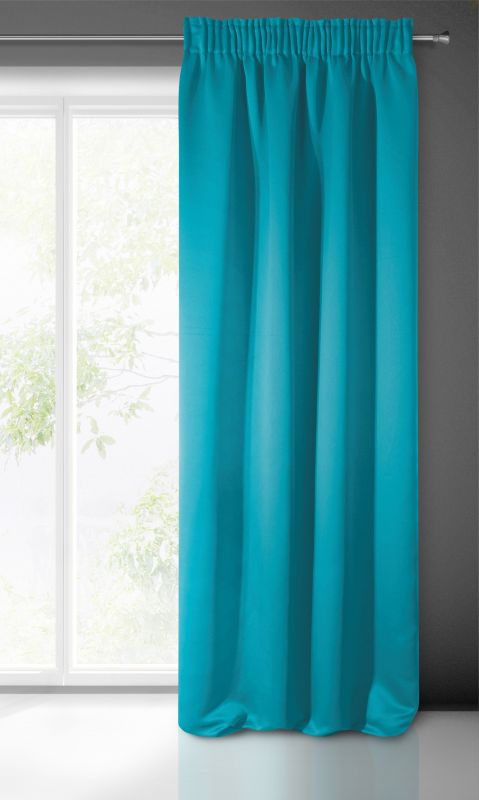 Elegancka zasłona jednokolorowa z tkaniny o wysokim stopniu zaciemnienia. Mięsisty, matowy materiał bez dekoroacji jest uniwersalnym elementem wystroju wnętrza. , szerokość: 135 cm, długość: 270 cm, kolor MORSKI. Gramatura: 210 GSM. Skład: 100% poliester