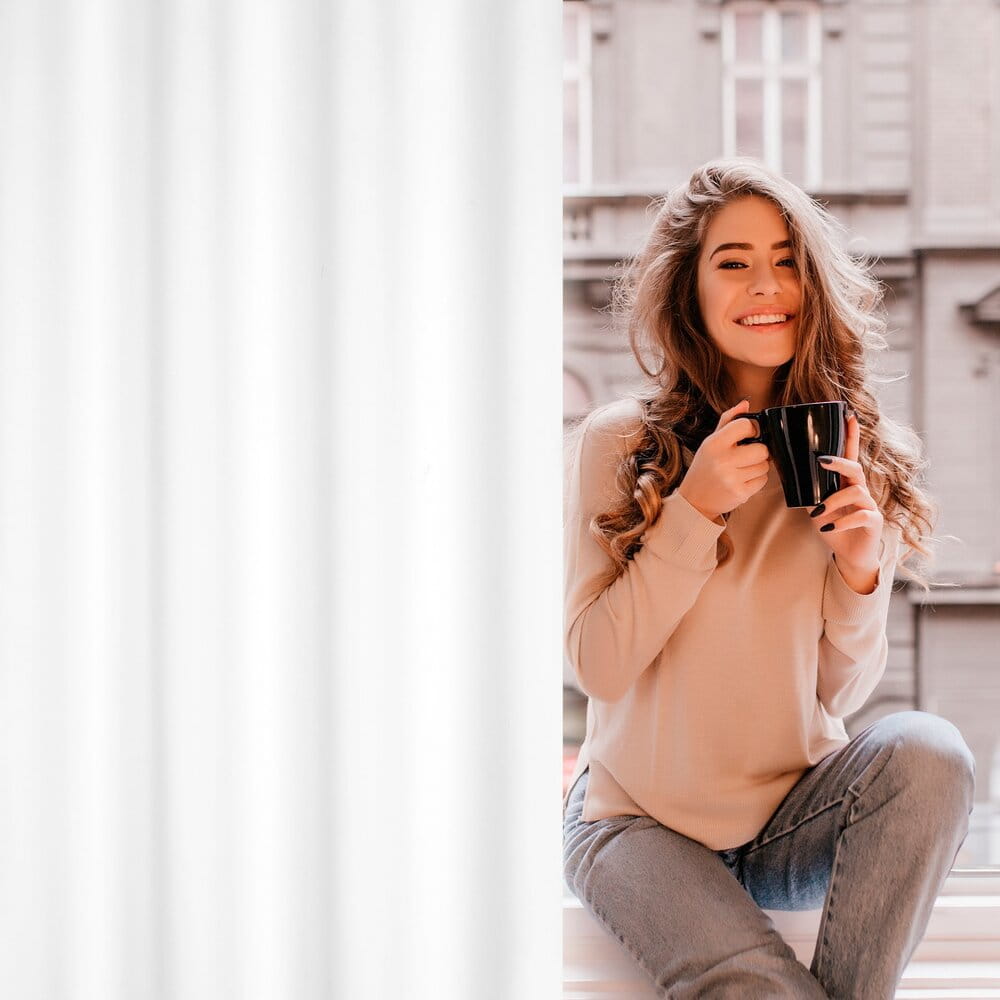 Elegancka zasłona jednokolorowa z tkaniny o wysokim stopniu zaciemnienia. Mięsisty, matowy materiał bez dekoroacji jest uniwersalnym elementem wystroju wnętrza. szerokość: 135 cm, długość: 270 cm, kolor: biały, Gramatura: 210 GSM, Skład: 100% poliester