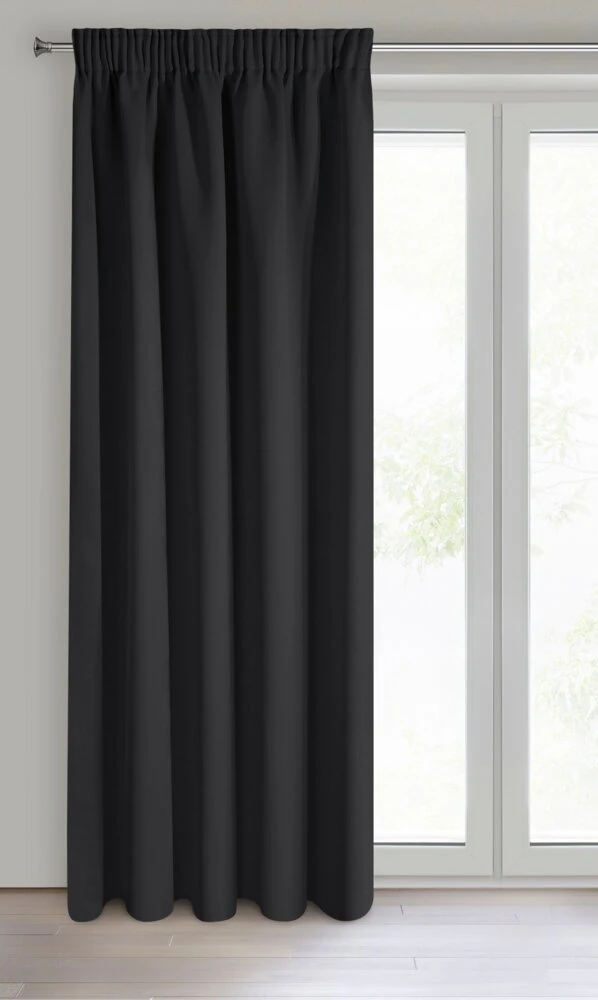 Elegancka zasłona jednokolorowa z tkaniny o wysokim stopniu zaciemnienia. Mięsisty, matowy materiał bez dekoroacji jest uniwersalnym elementem wystroju wnętrza. szerokość: 135 cm, długość: 270 cm, kolor: czarny, Gramatura: 210 GSM, Skład: 100% poliester
