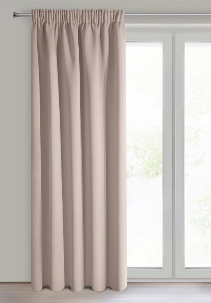 Elegancka zasłona jednokolorowa z tkaniny o wysokim stopniu zaciemnienia. Mięsisty, matowy materiał bez dekoroacji jest uniwersalnym elementem wystroju wnętrza. szerokość: 135 cm, długość: 270 cm, kolor: pudrowy róż, Gramatura: 210 GSM, Skład: 100% poliester