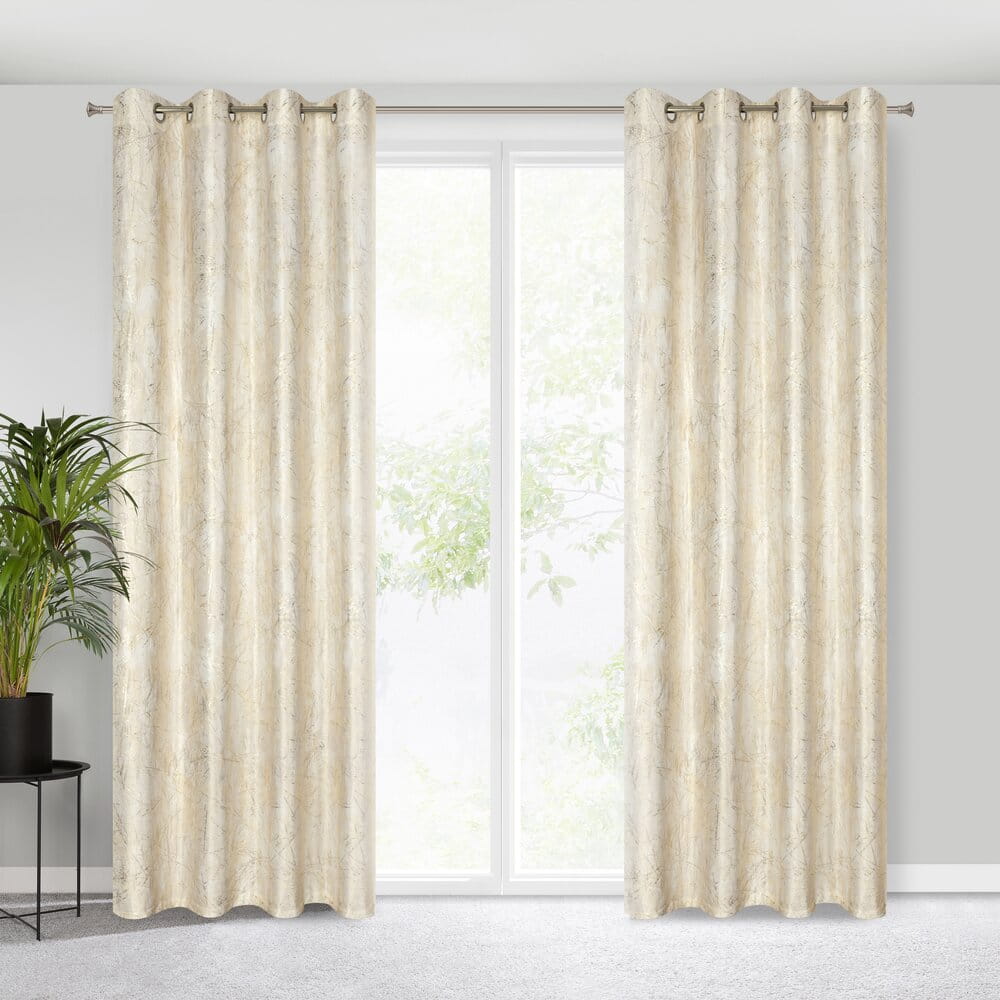 Zasłona welwetowa z metalicznym nadrukiem szerokość: 140 cm, długość: 250 cm, kolor: kremowy, Gramatura: 200 GSM, Skład: 100% poliester