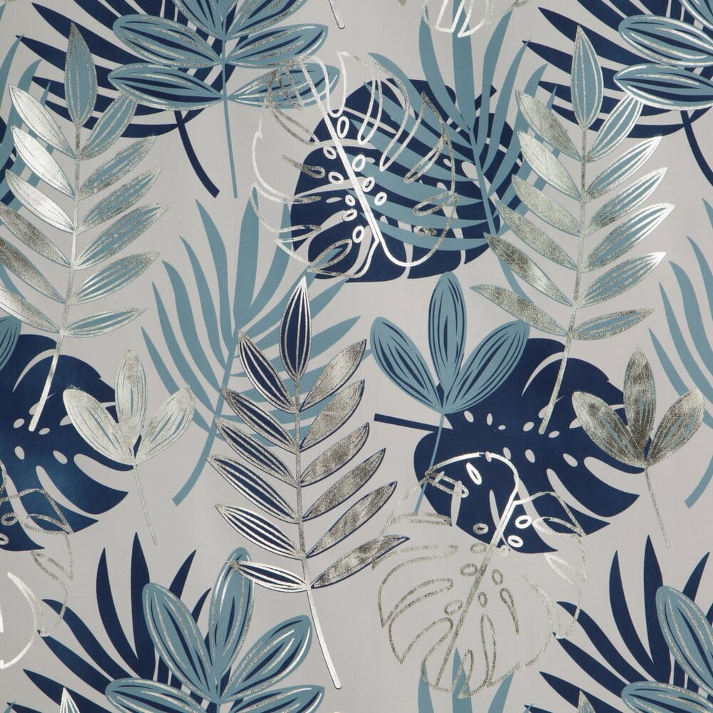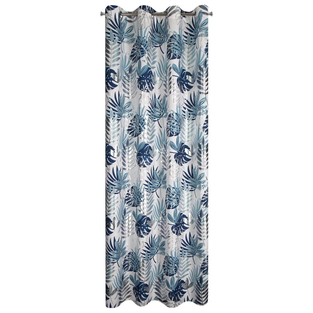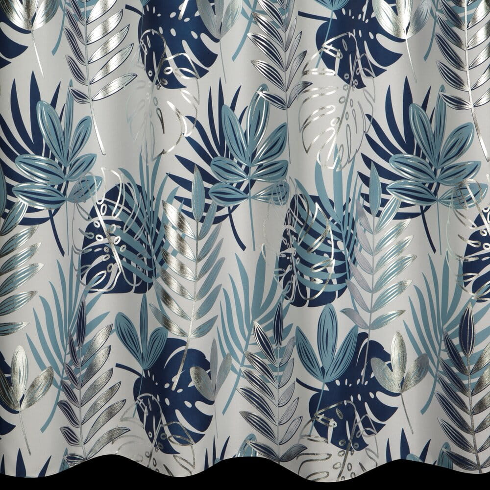 Zasłona z motywem botanicznym z błyszczącym nadrukiem kolor: granatowy, Gramatura: 135 GSM, Skład: 100% poliester
