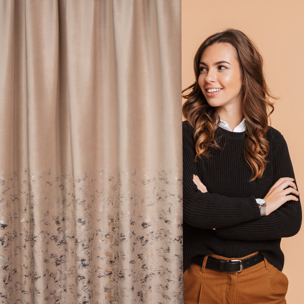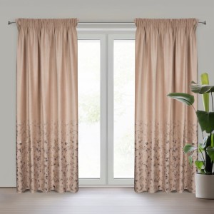 Zasłona welwetowa z metalicznym nadrukiem od dołu szerokość: 140 cm, długość: 270 cm, kolor: beżowy, Gramatura: 200 GSM, Skład: 100% poliester