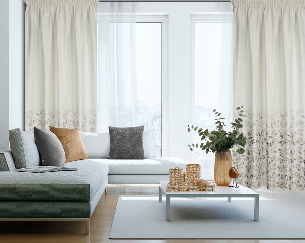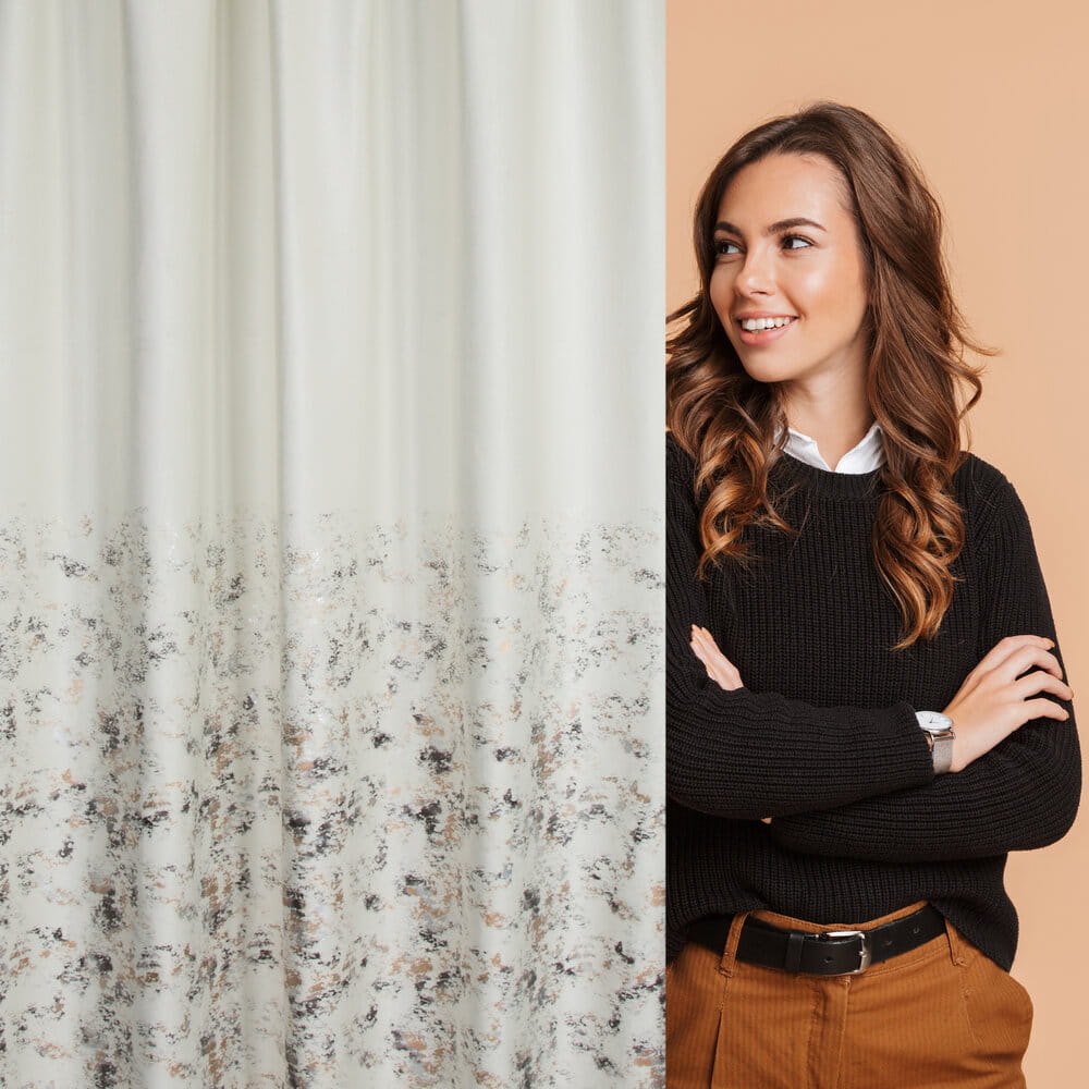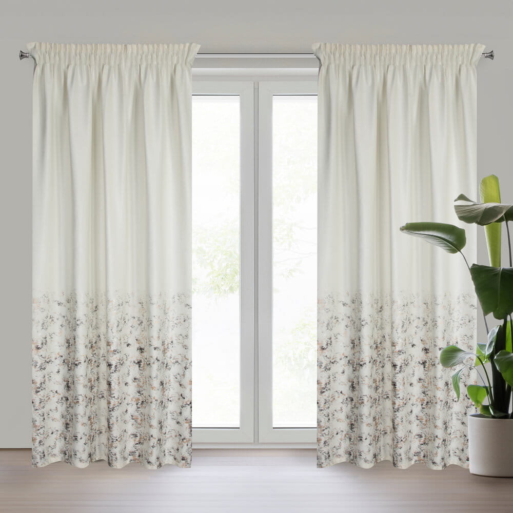 Zasłona welwetowa z metalicznym nadrukiem od dołu szerokość: 140 cm, długość: 270 cm, kolor: kremowy, Gramatura: 200 GSM, Skład: 100% poliester