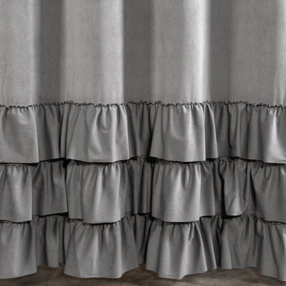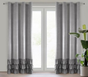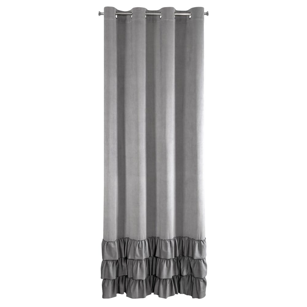 Zasłony z tkaniny welwetowej zdobione w górnej części 3 falbanami szerokość: 140 cm, długość: 250 cm, kolor: stalowy, Skład: 100% poliester