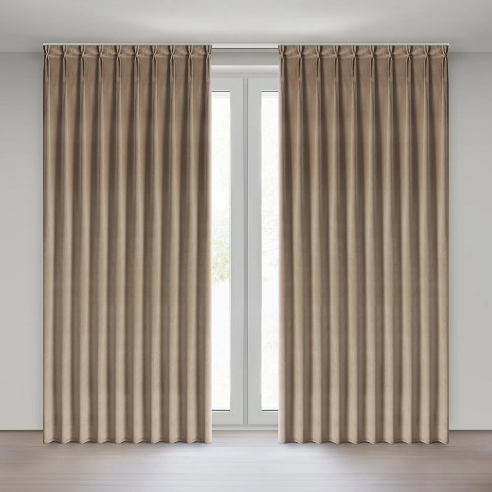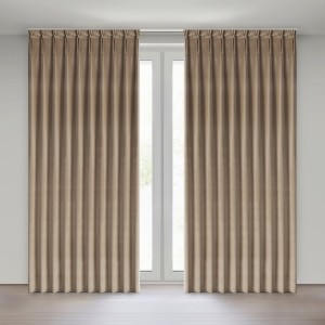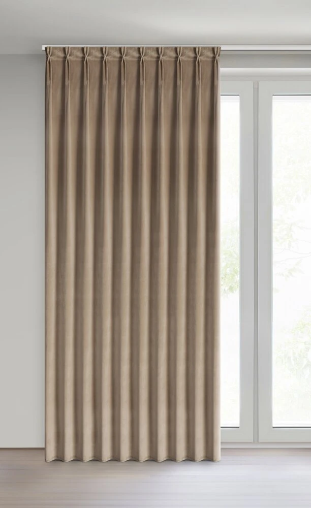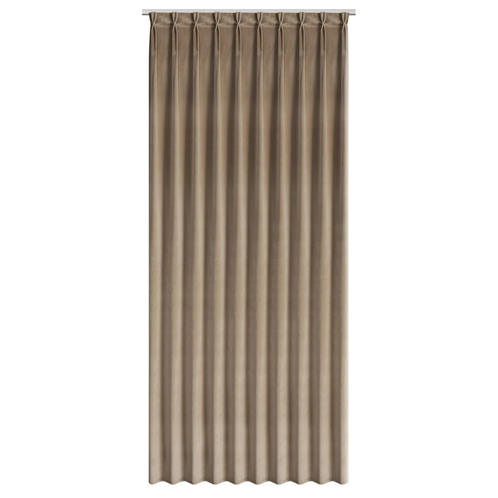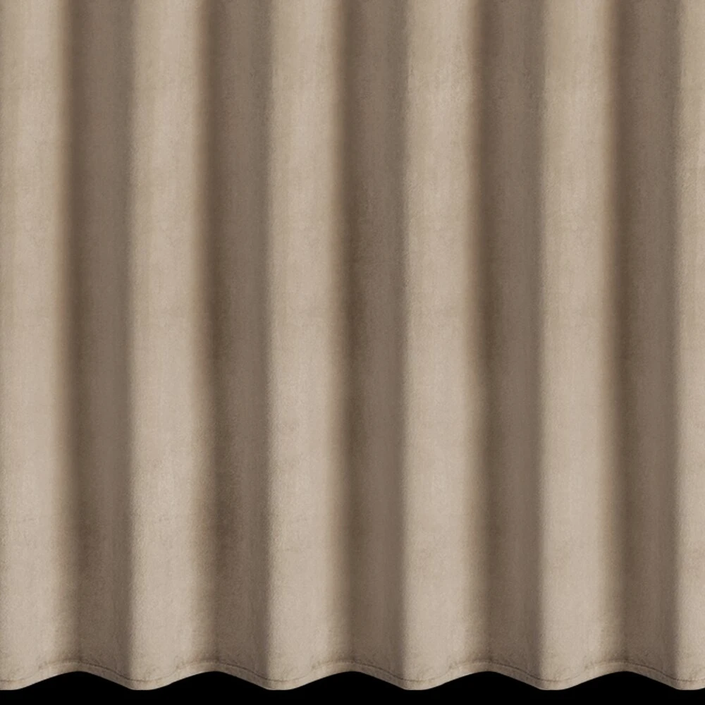 Miękka zasłona z welwetu o matowym wykończeniu. Mięsista tkanina o średnich właściwościach zaciemniających nadaje wnętrzu eleganckiego charakteru. szerokość: 125 cm, długość: 270 cm, kolor: ciemnobeżowy, Gramatura: 200 GSM, Skład: 100% poliester