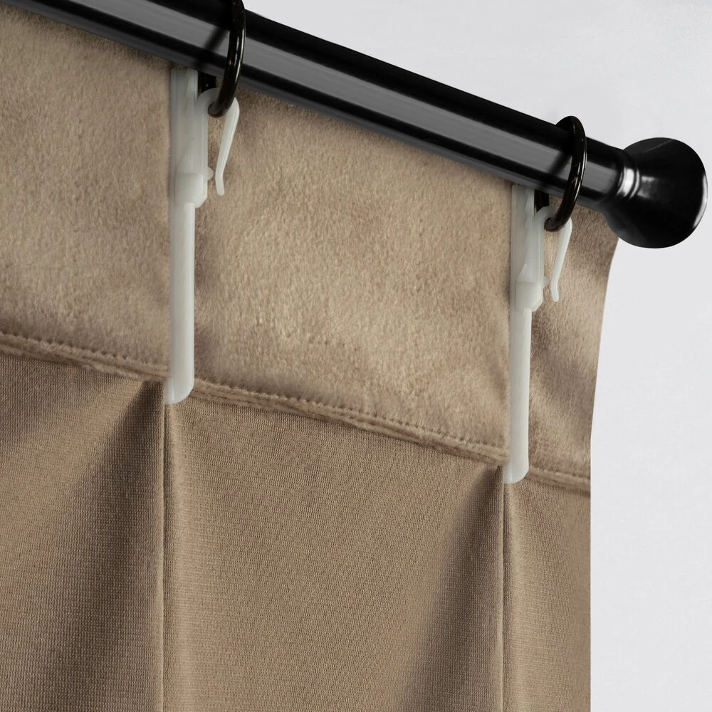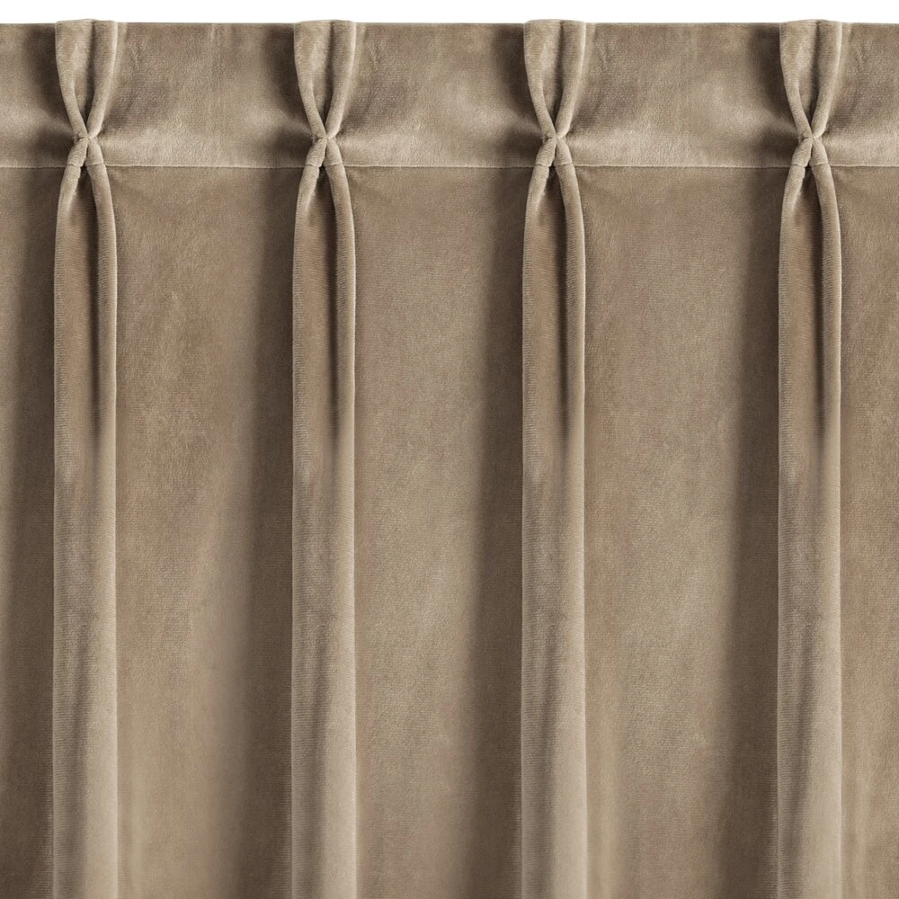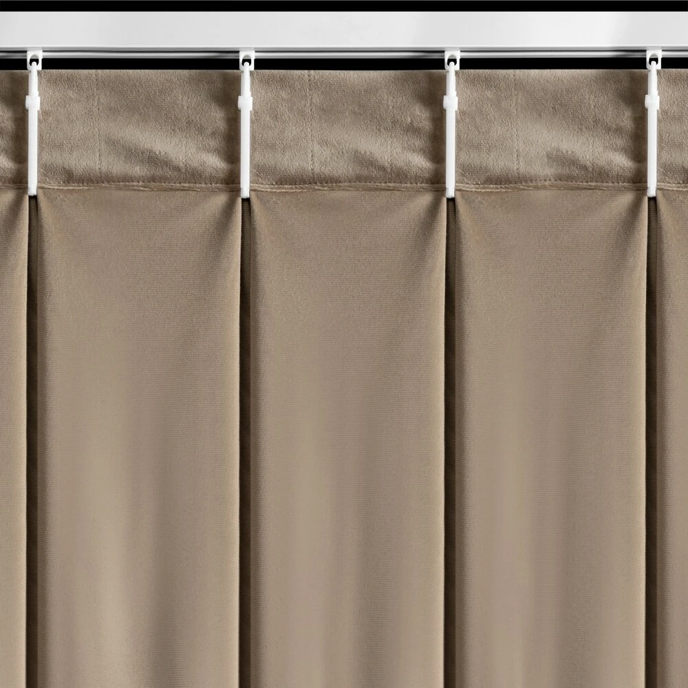 Miękka zasłona z welwetu o matowym wykończeniu. Mięsista tkanina o średnich właściwościach zaciemniających nadaje wnętrzu eleganckiego charakteru. szerokość: 125 cm, długość: 270 cm, kolor: ciemnobeżowy, Gramatura: 200 GSM, Skład: 100% poliester