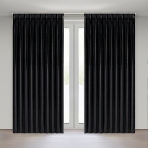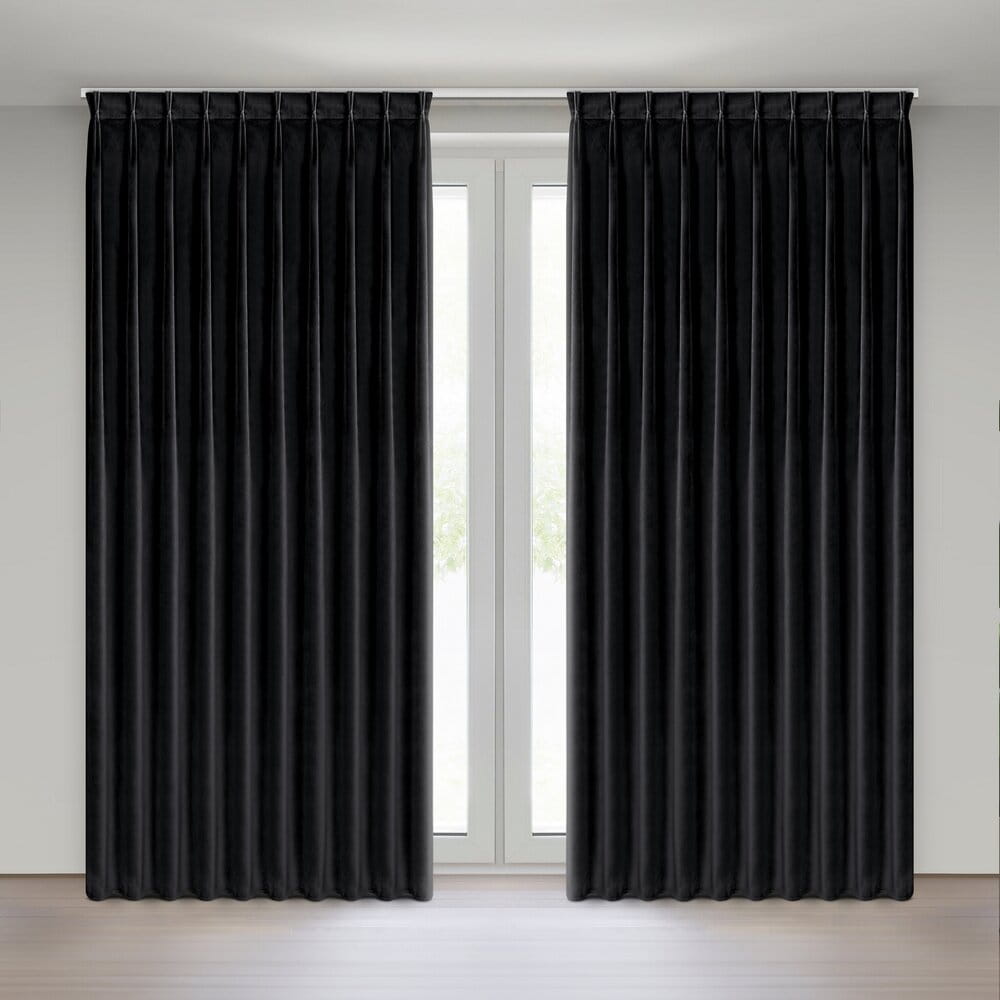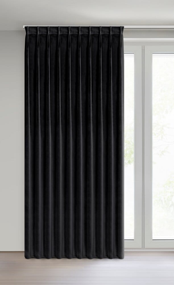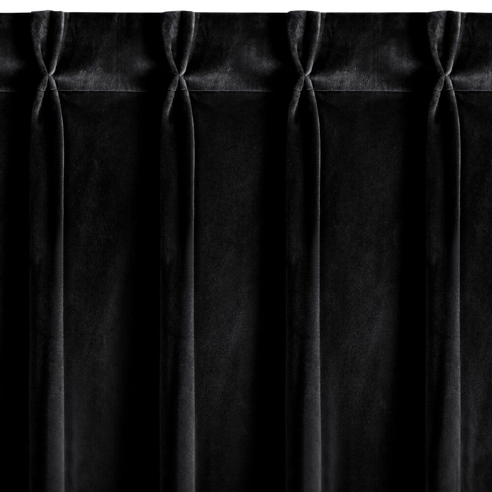 Miękka zasłona z welwetu o matowym wykończeniu. Mięsista tkanina o średnich właściwościach zaciemniających nadaje wnętrzu eleganckiego charakteru. szerokość: 125 cm, długość: 270 cm, kolor: czarny, Gramatura: 200 GSM, Skład: 100% poliester