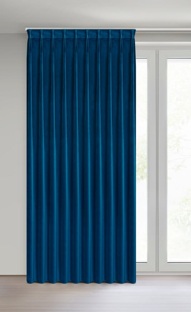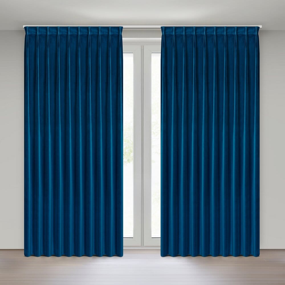 Miękka zasłona z welwetu o matowym wykończeniu. Mięsista tkanina o średnich właściwościach zaciemniających nadaje wnętrzu eleganckiego charakteru. szerokość: 125 cm, długość: 270 cm, kolor: granatowy, Gramatura: 200 GSM, Skład: 100% poliester