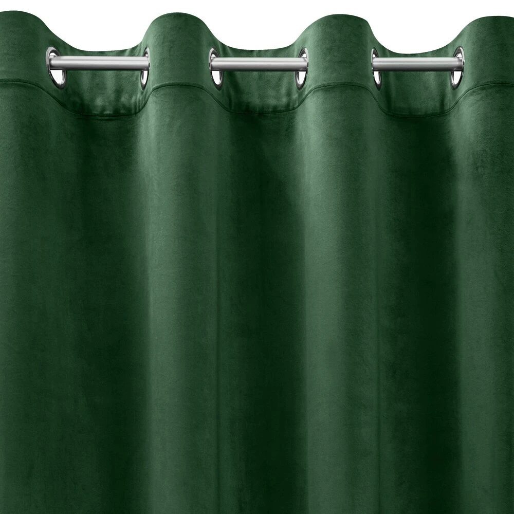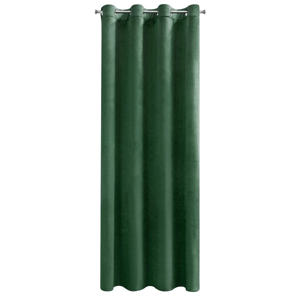 Miękka zasłona z welwetu o matowym wykończeniu. Mięsista tkanina o średnich właściwościach zaciemniających nadaje wnętrzu eleganckiego charakteru. szerokość: 140 cm, długość: 250 cm, kolor: ciemnozielony, Gramatura: 200 GSM, Skład: 100% poliester