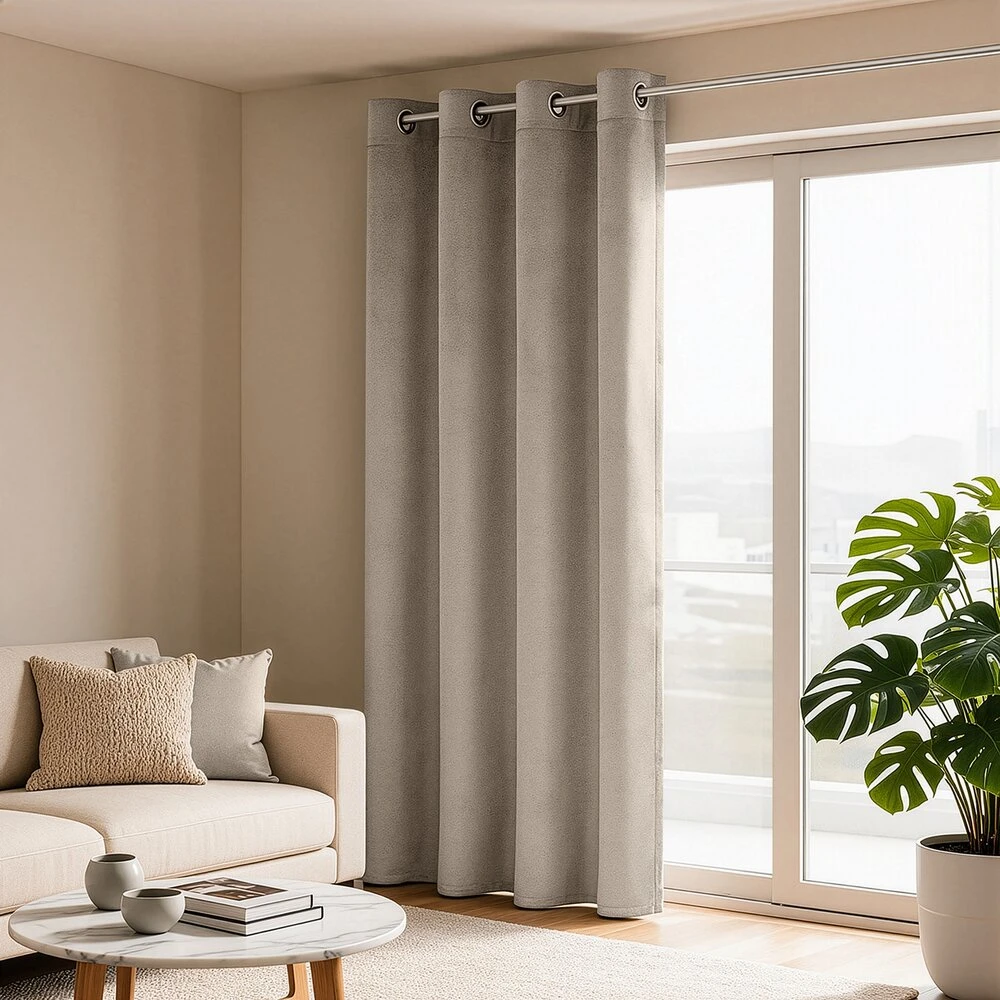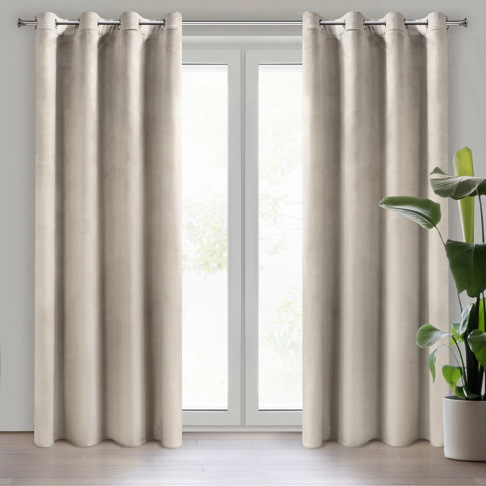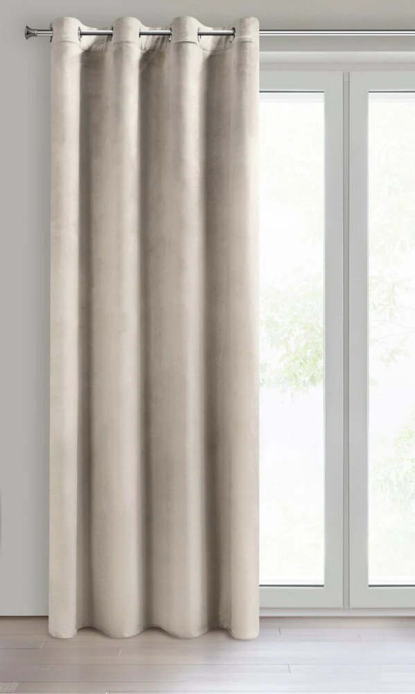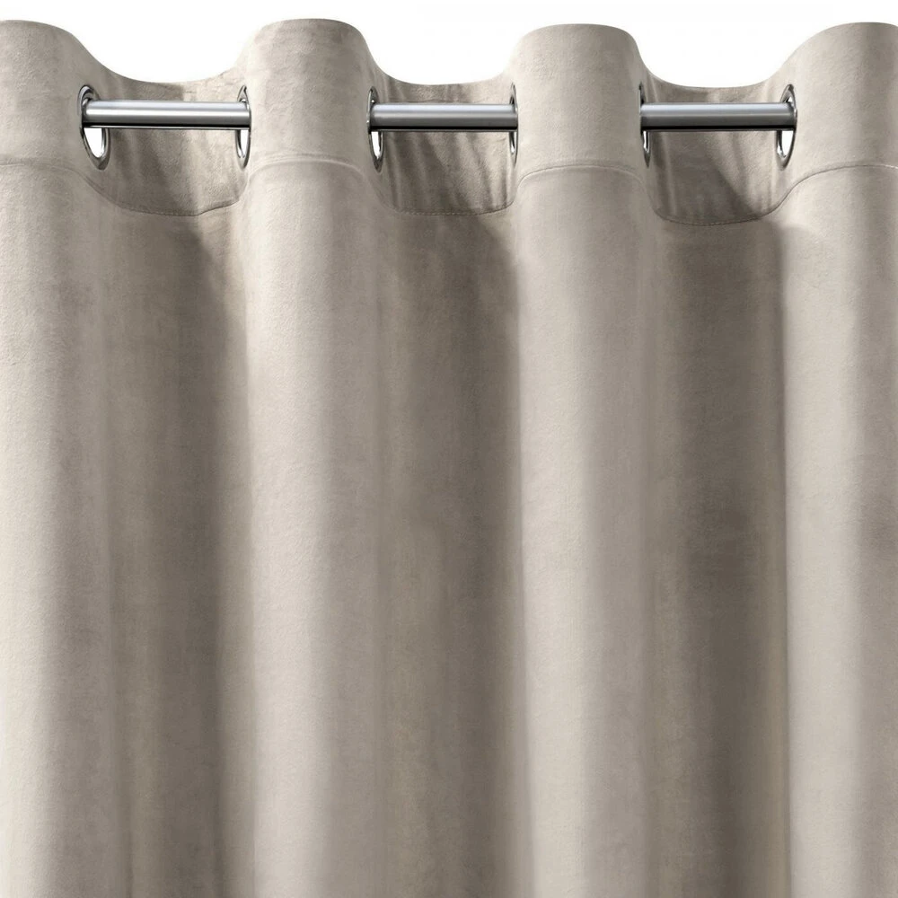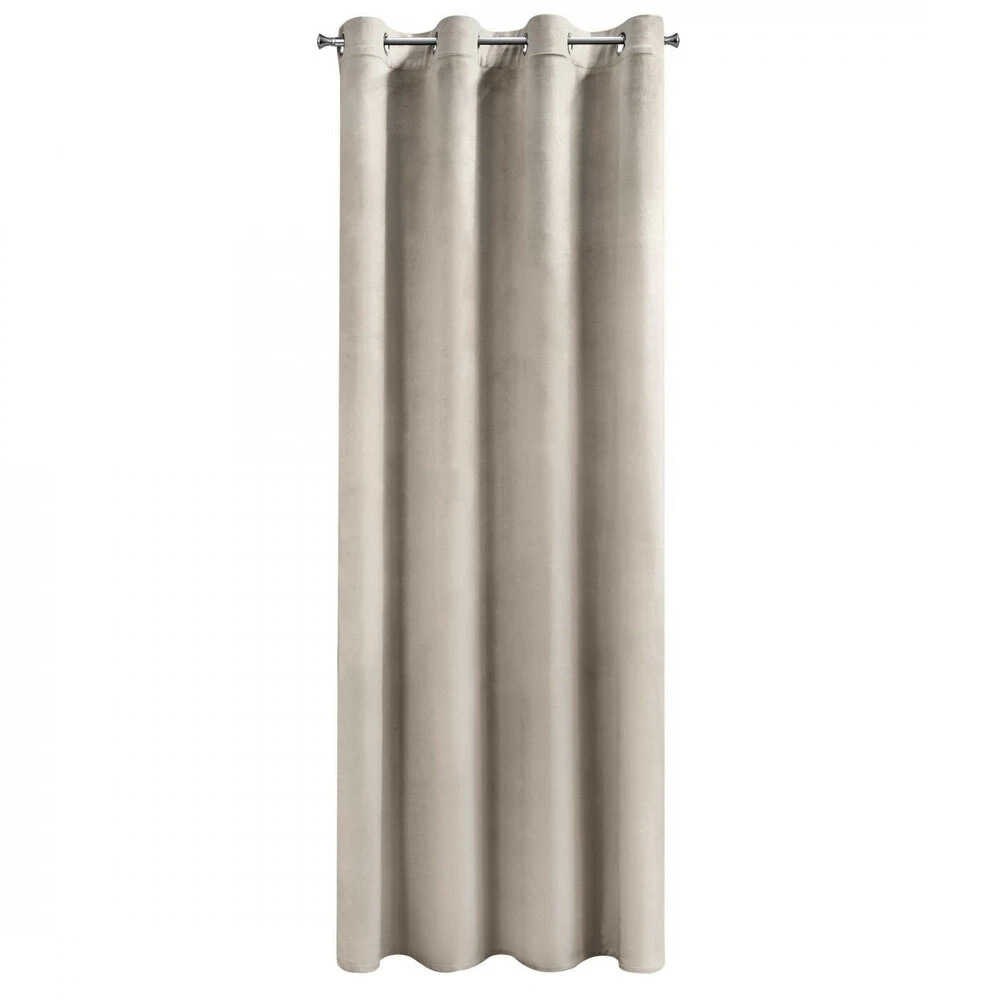 Miękka zasłona z welwetu o matowym wykończeniu. Mięsista tkanina o średnich właściwościach zaciemniających nadaje wnętrzu eleganckiego charakteru. szerokość: 140 cm, długość: 260 cm, kolor: beżowy, Gramatura: 200 GSM, Skład: 100% poliester