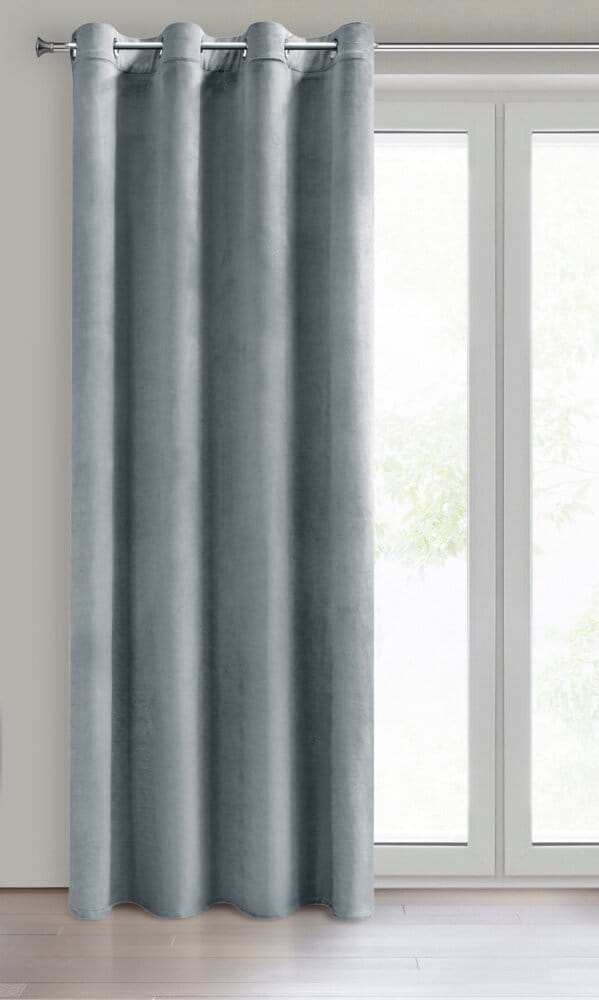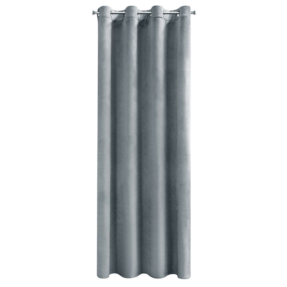 Miękka zasłona z welwetu o matowym wykończeniu. Mięsista tkanina o średnich właściwościach zaciemniających nadaje wnętrzu eleganckiego charakteru. szerokość: 140 cm, długość: 260 cm, kolor: szary, Gramatura: 200 GSM, Skład: 100% poliester