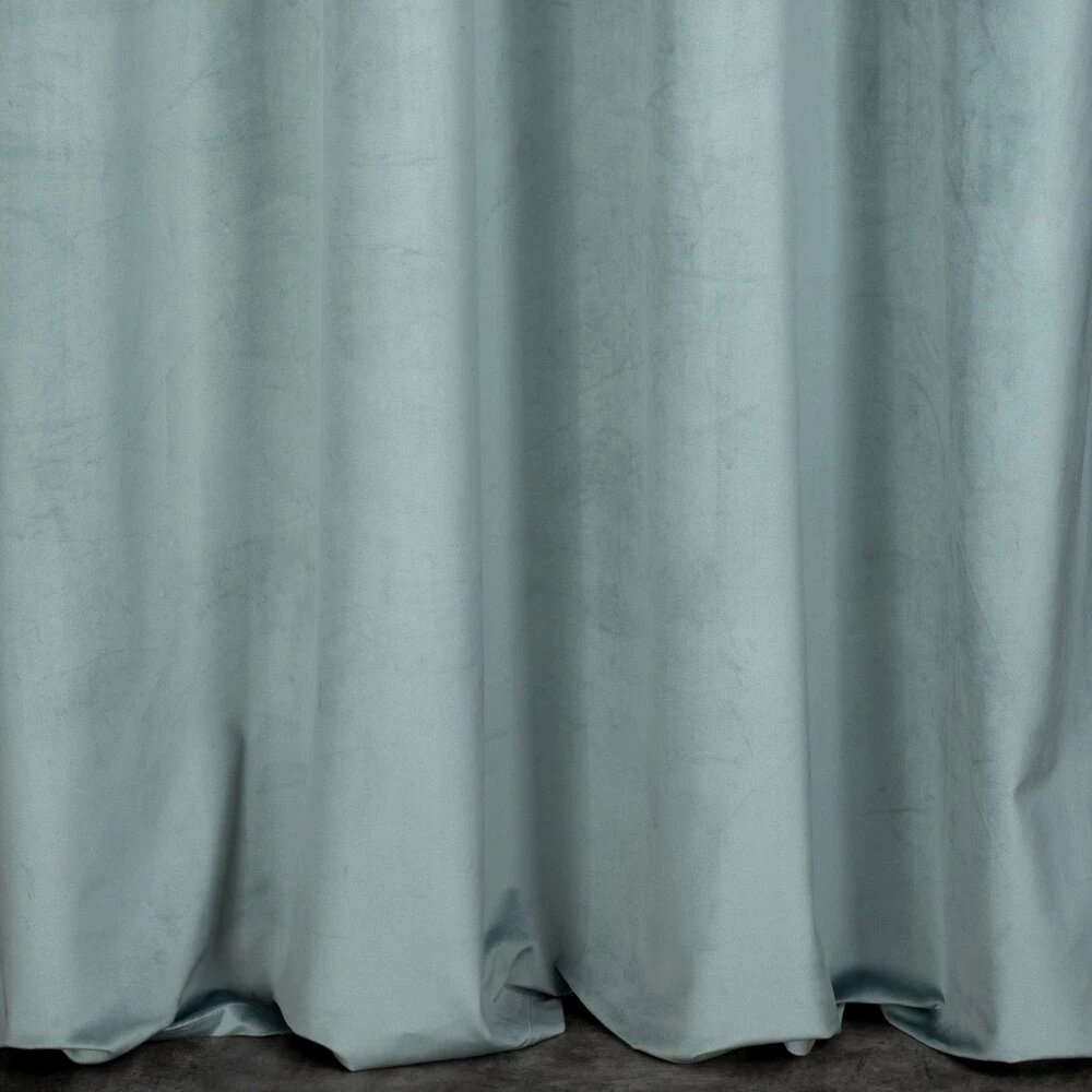 Miękka zasłona z welwetu o matowym wykończeniu. Mięsista tkanina o średnich właściwościach zaciemniających nadaje wnętrzu eleganckiego charakteru. szerokość: 140 cm, długość: 270 cm, kolor: szałwiowy, Gramatura: 200 GSM, Skład: 100% poliester