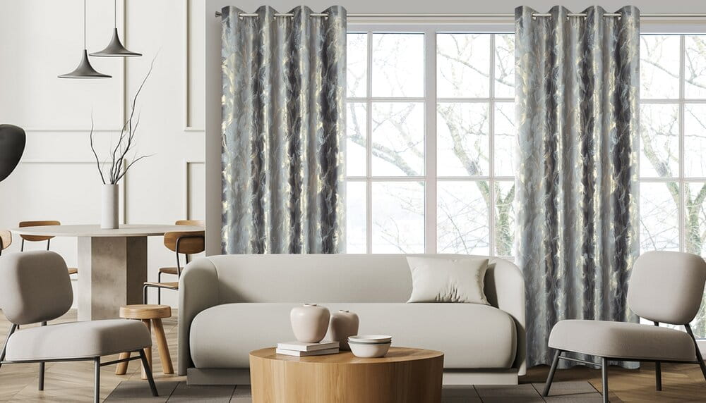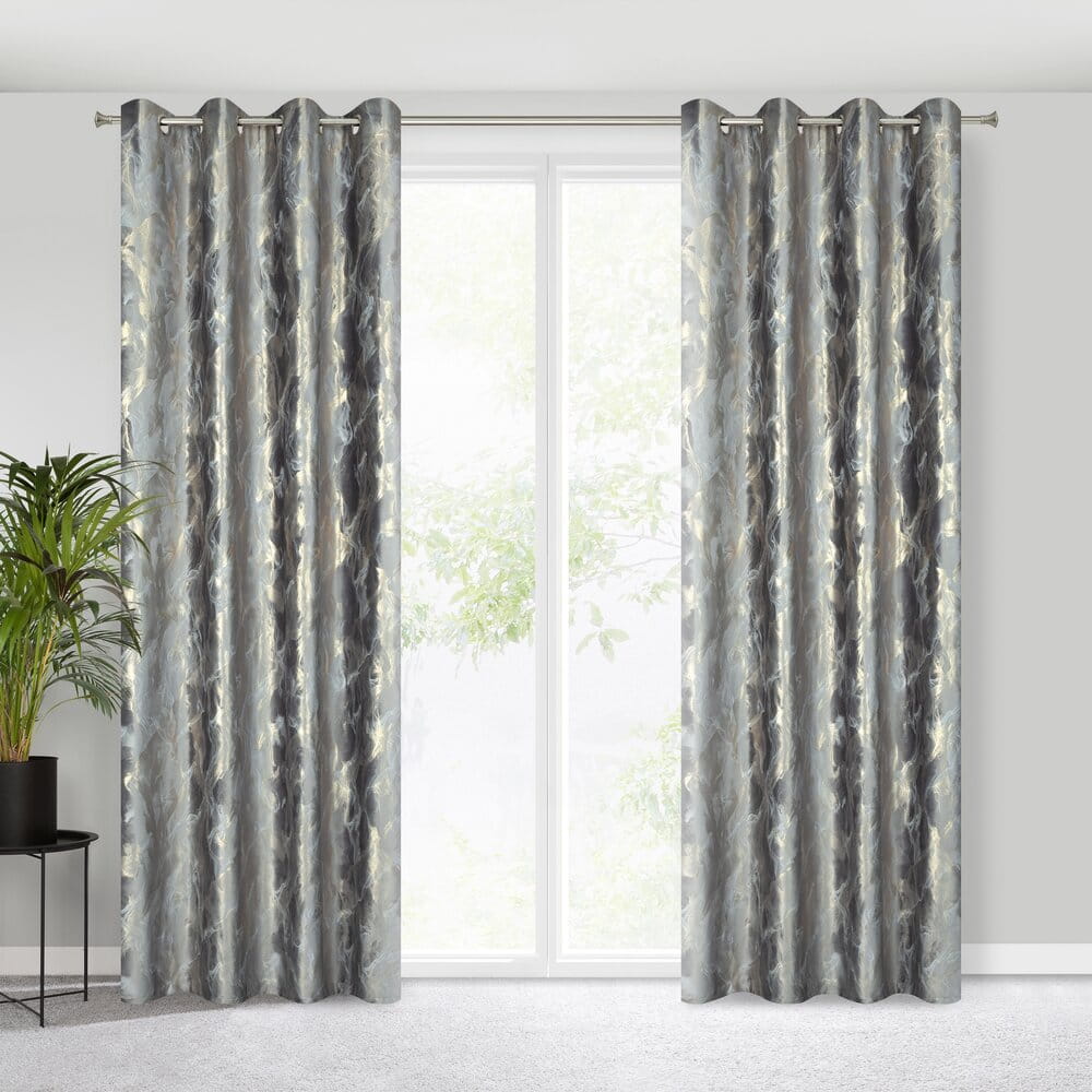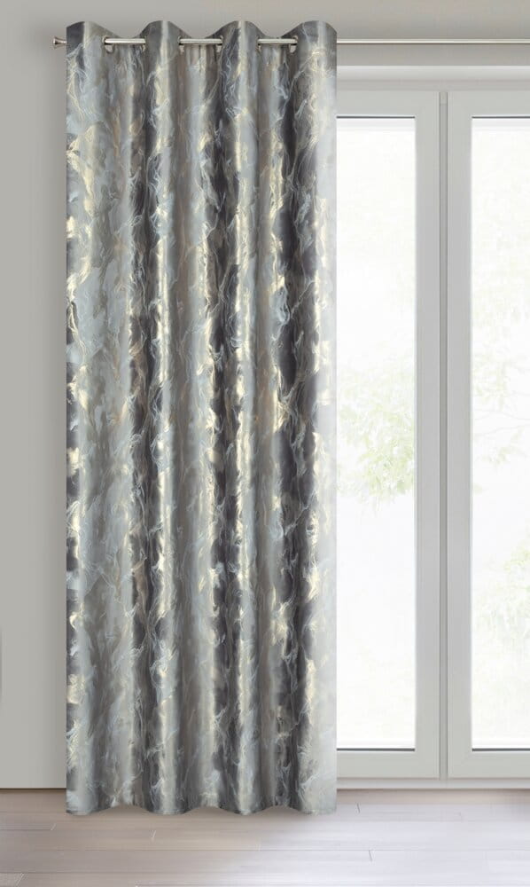 Zasłona welwetowa z metalicznym nadrukiem szerokość: 140 cm, długość: 250 cm, kolor: stalowy, Gramatura: 200 GSM, Skład: 100% poliester