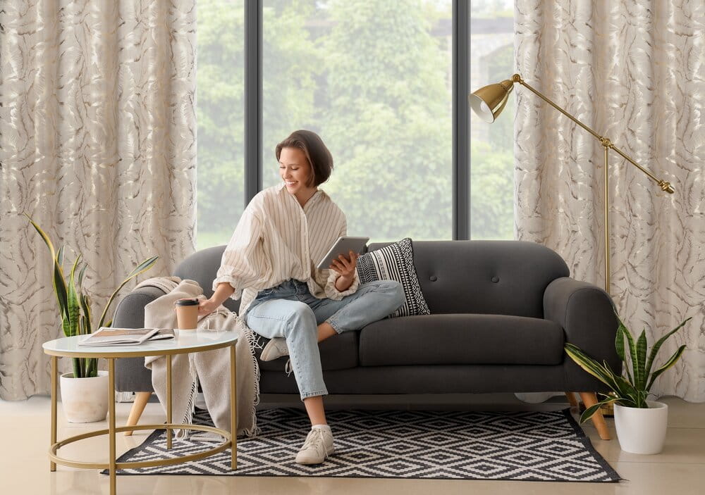 Zasłona gotowa welwetowa z błyszczącym nadrukiem szerokość: 140 cm, długość: 250 cm, kolor: beżowy, Gramatura: 200 GSM, Skład: 100% poliester