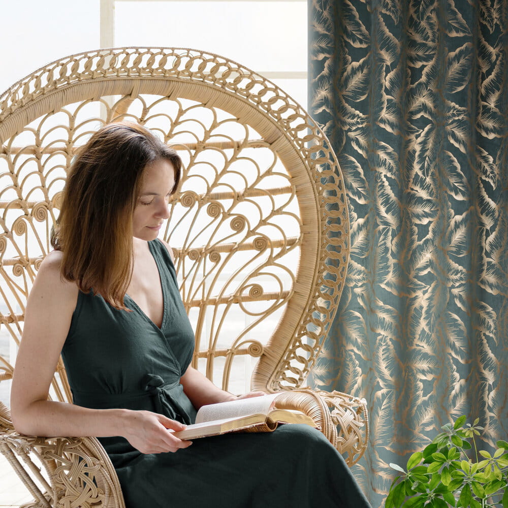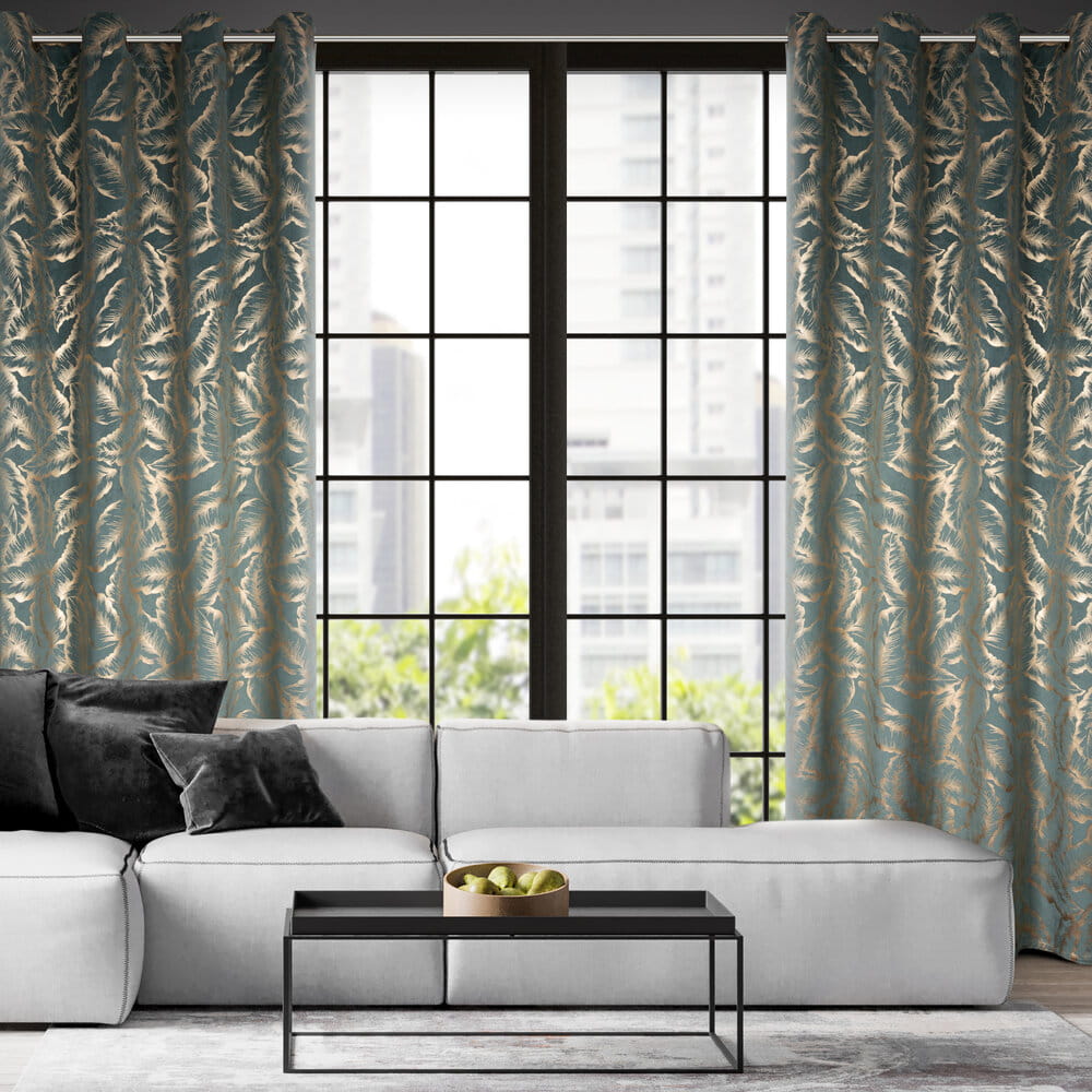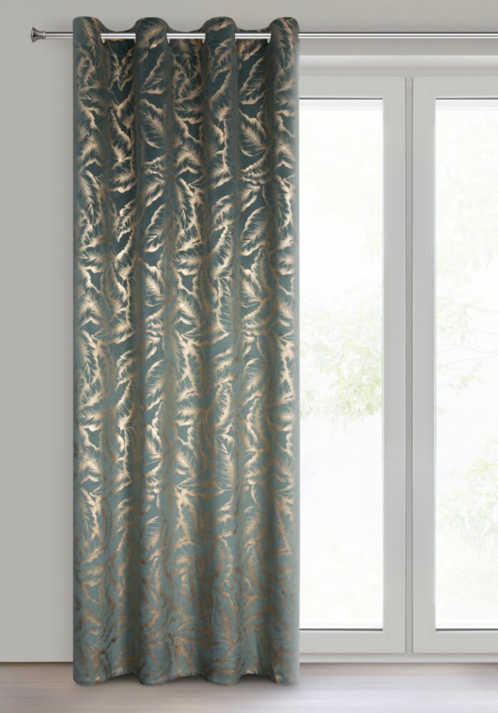 Zasłona gotowa welwetowa z błyszczącym nadrukiem szerokość: 140 cm, długość: 250 cm, kolor: miętowy, Gramatura: 200 GSM, Skład: 100% poliester