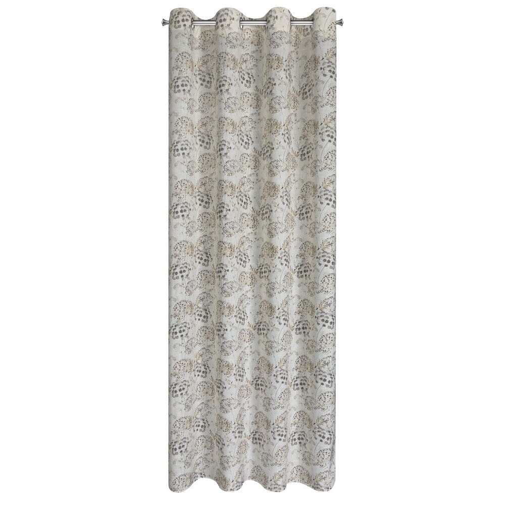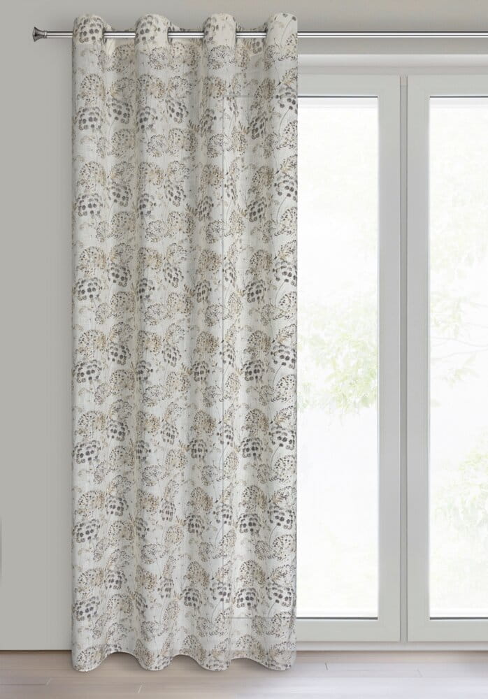 Zasłona gotowa z motywem botanicznym, z domieszką lnu szerokość: 140 cm, długość: 250 cm, kolor: naturalny, Gramatura: 220 GSM, Skład: 15% len, 85% poliester