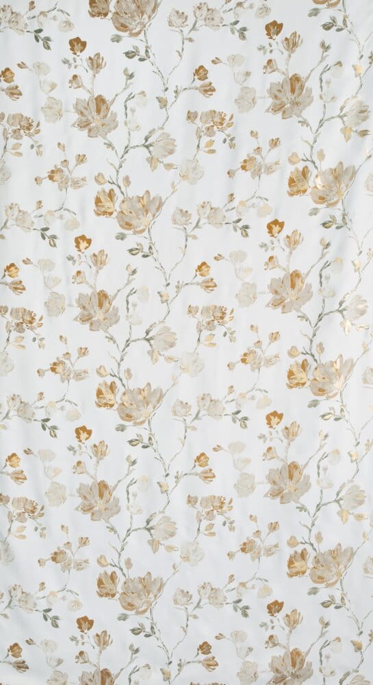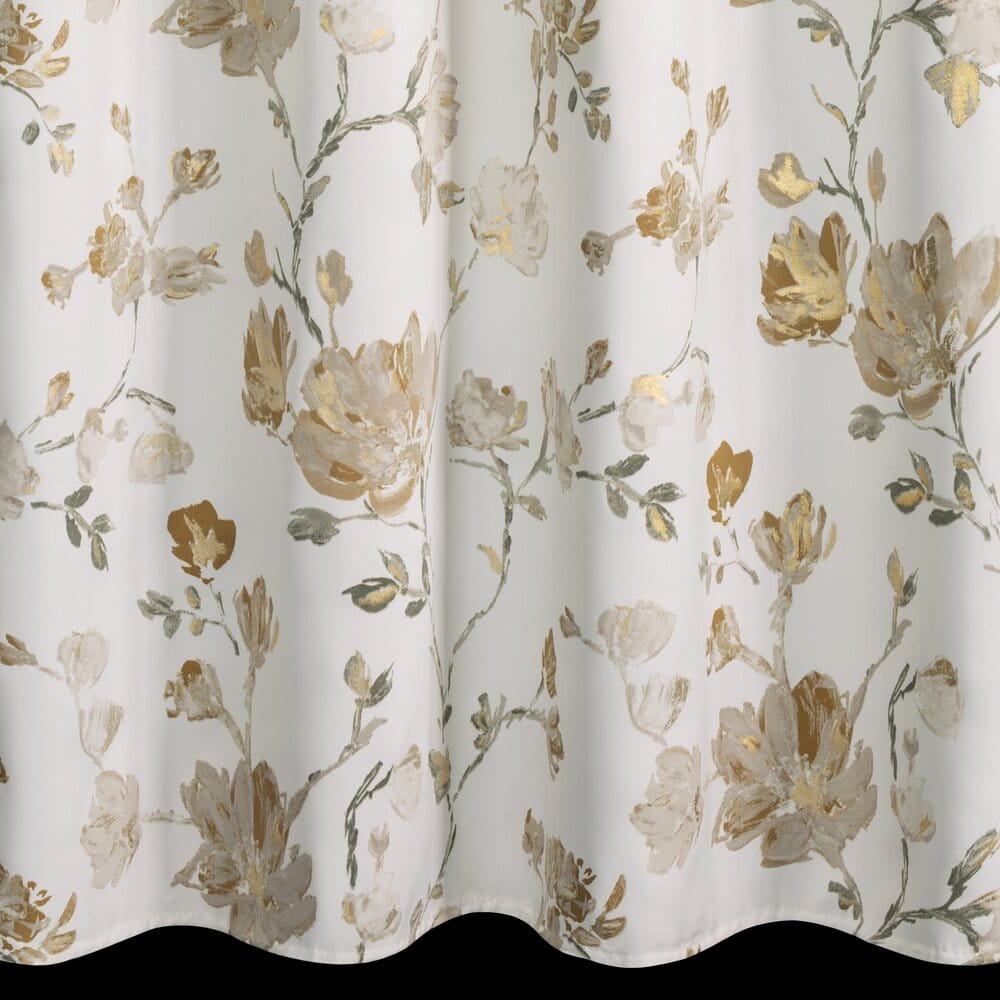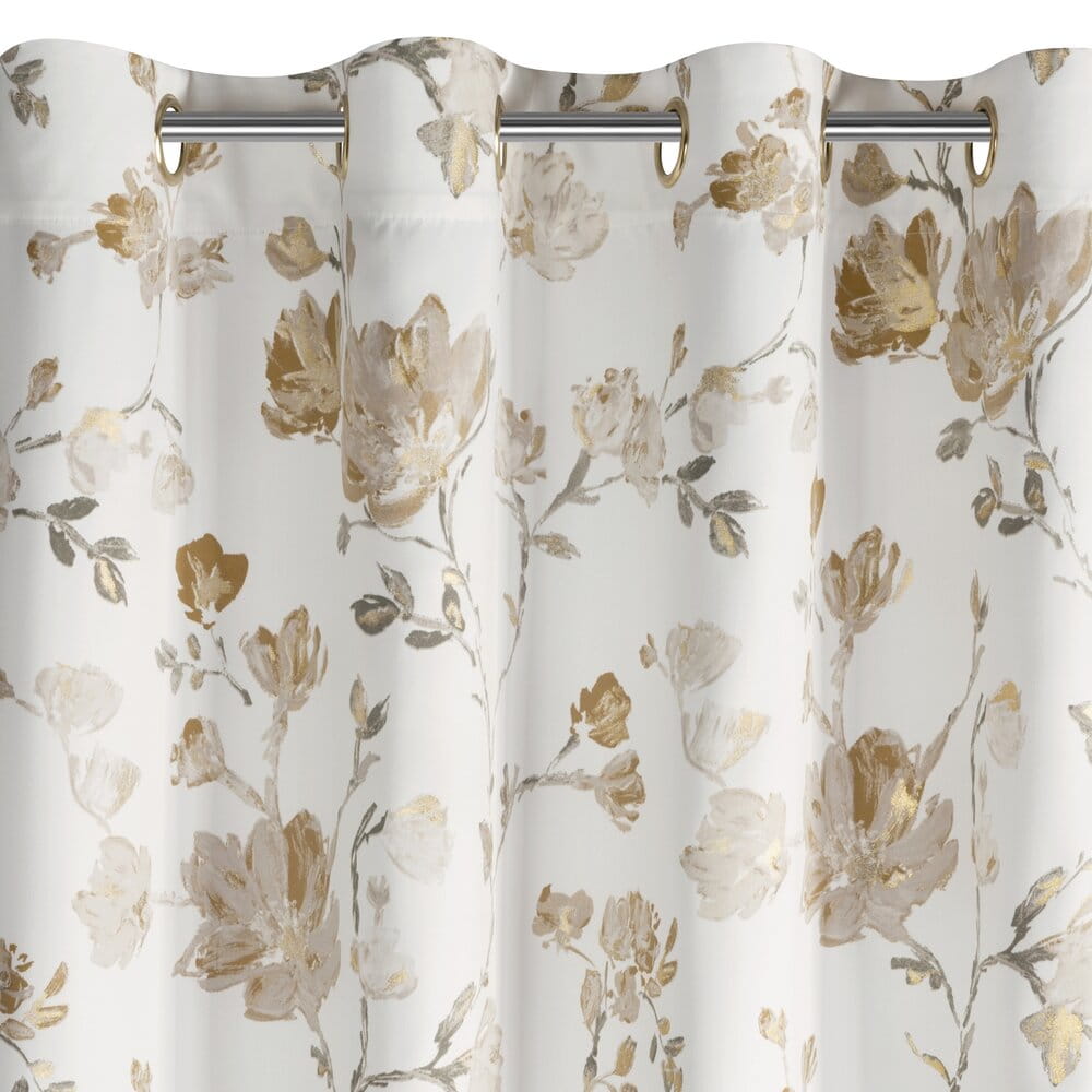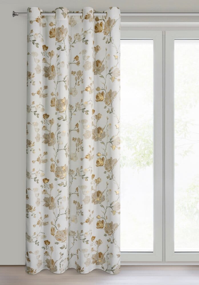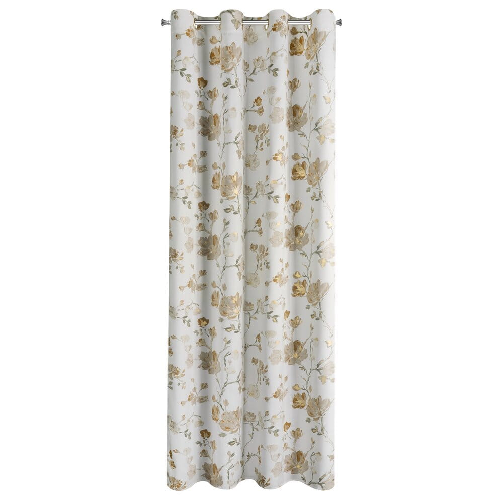 Zasłona gotowa zaciemniająca z nadrukiem błyszczącym szerokość: 140 cm, długość: 250 cm, kolor: biały, Gramatura: 190 GSM, Skład: 100% poliester