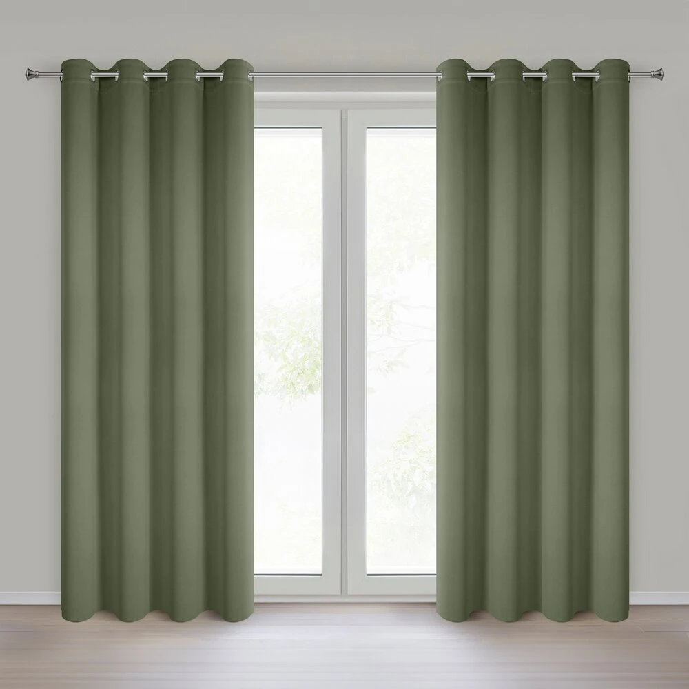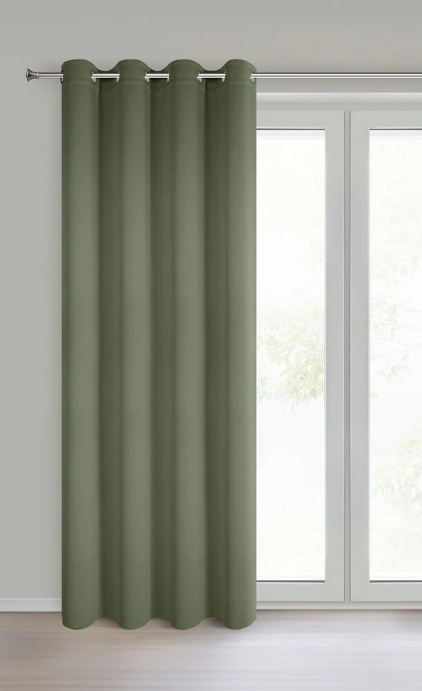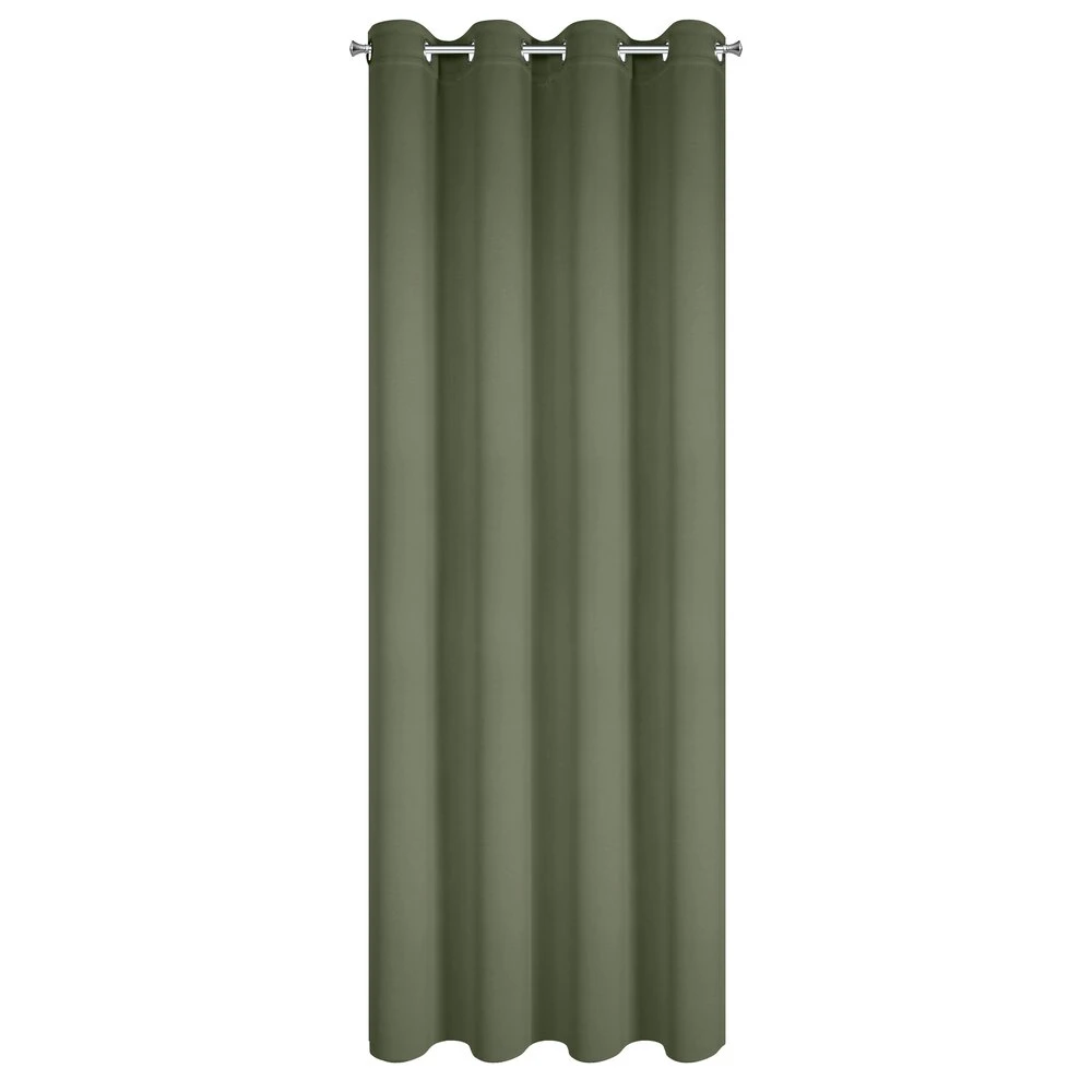 Zasłona gotowa zaciemniająca szerokość: 140 cm, długość: 250 cm, kolor: oliwkowy, Gramatura: 190 GSM, Skład: 100% poliester