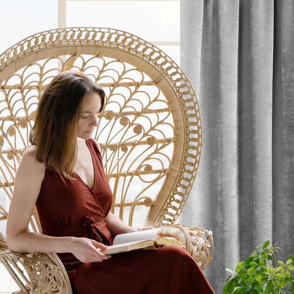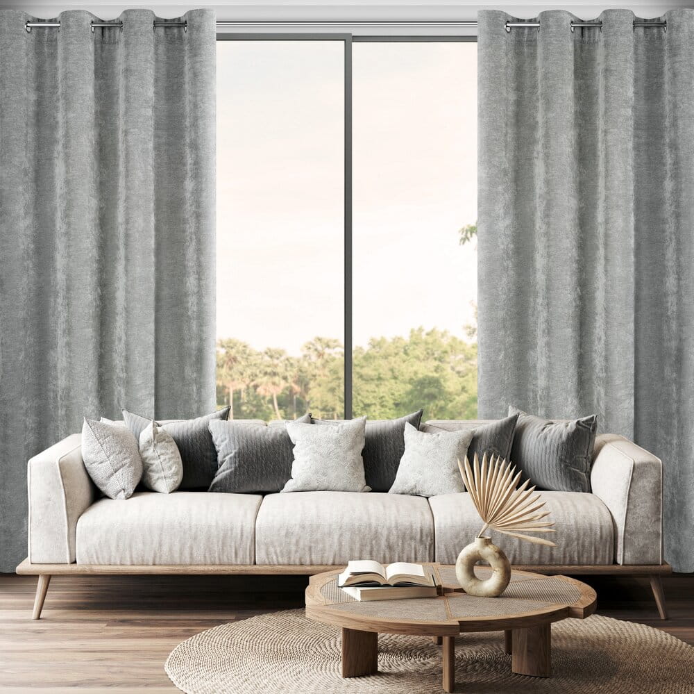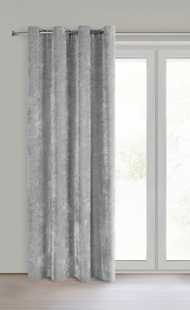 Zasłona gotowa o szenilowej strukturze szerokość: 140 cm, długość: 250 cm, kolor: szary, Gramatura: 160 GSM, Skład: 100% poliester