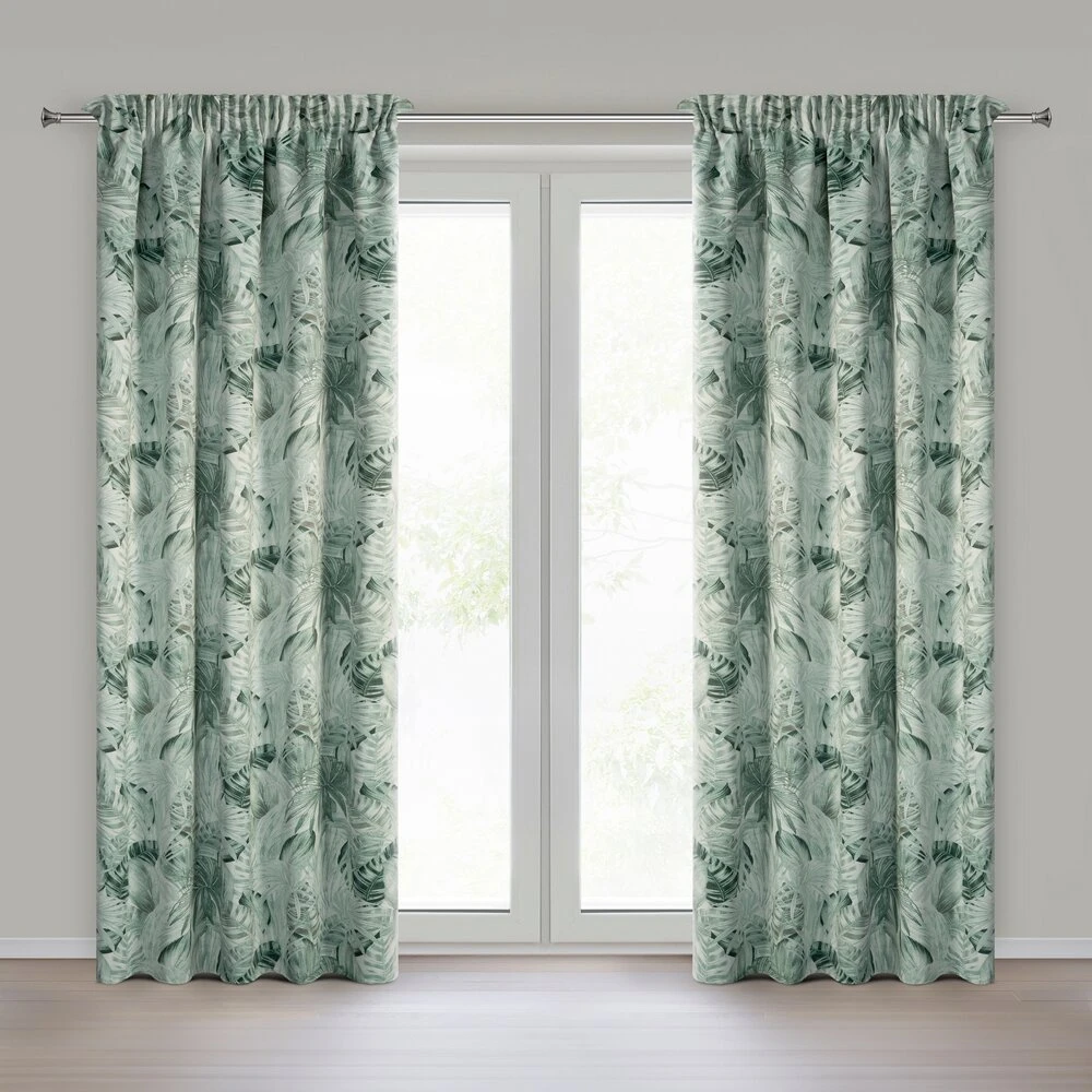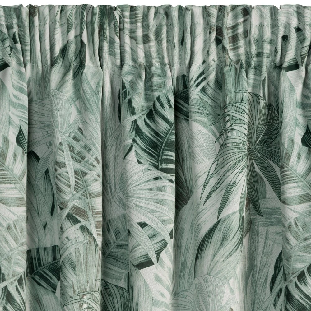 Zasłona gotowa zaciemniająca z motywem liści szerokość: 140 cm, długość: 270 cm, kolor: miętowy, Gramatura: 205 GSM, Skład: 100% poliester