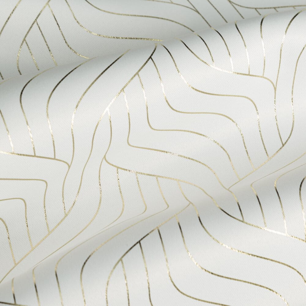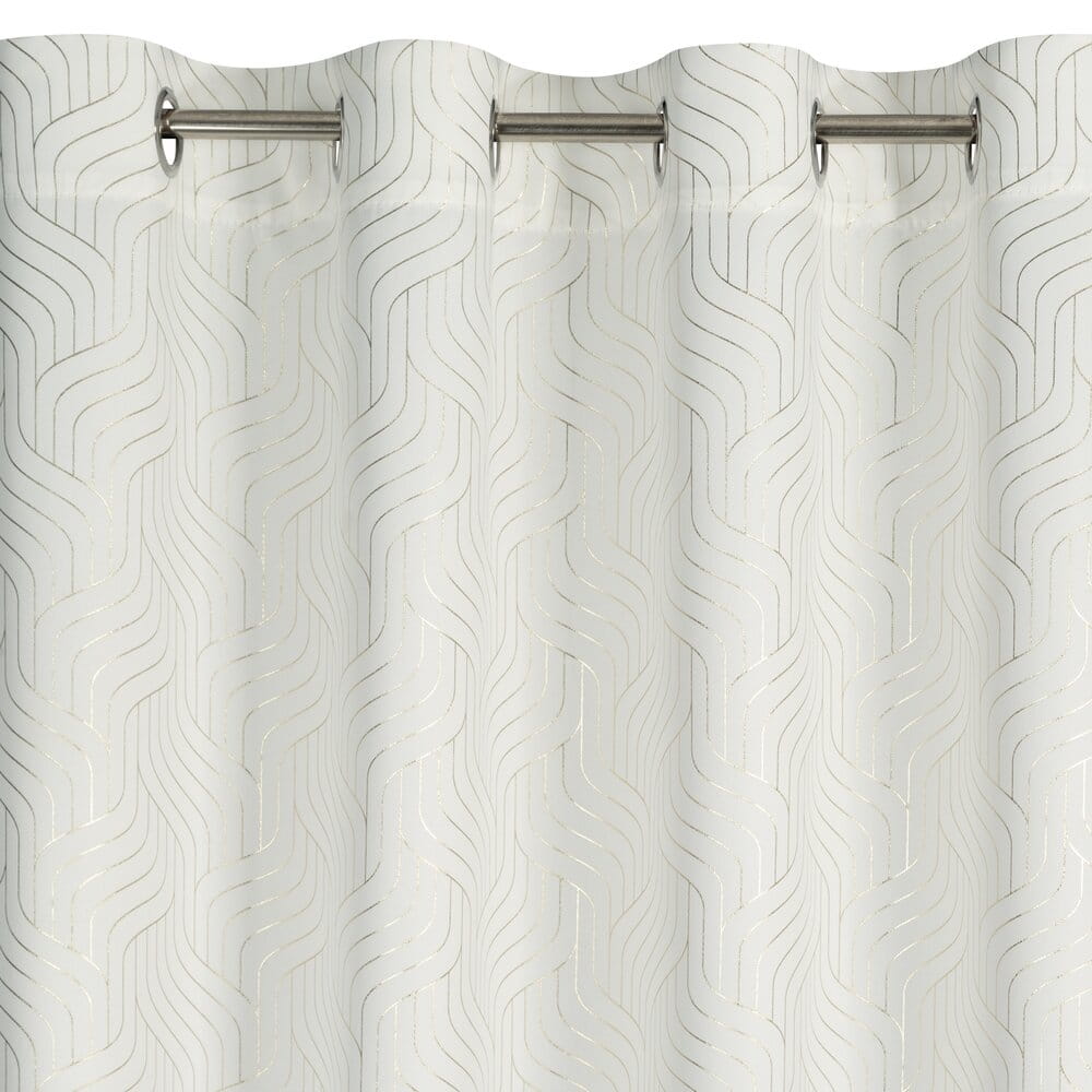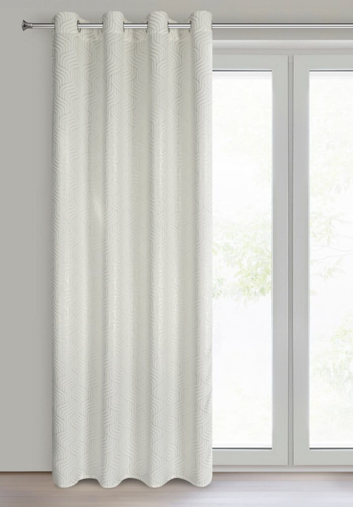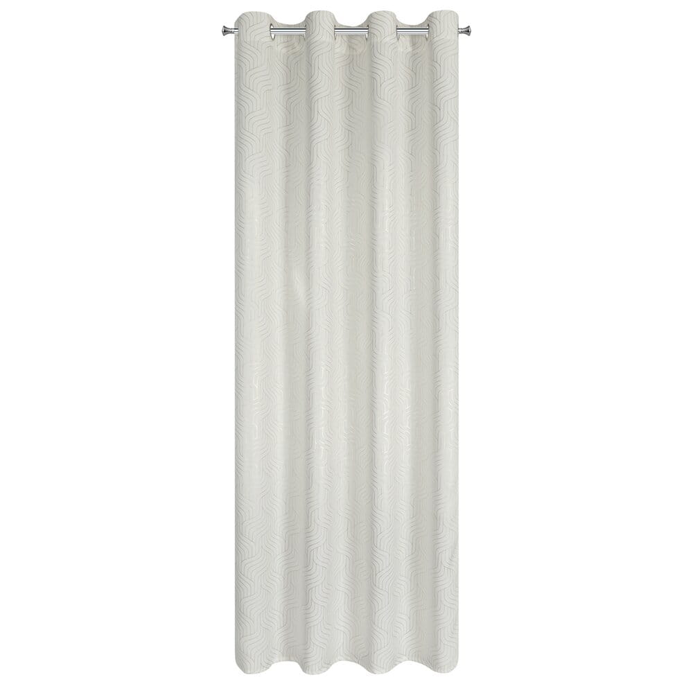 Zasłona gotowa zaciemniająca w błyszczący geometryczny wzór szerokość: 140 cm, długość: 250 cm, kolor: biały, Gramatura: 190 GSM, Skład: 100% poliester