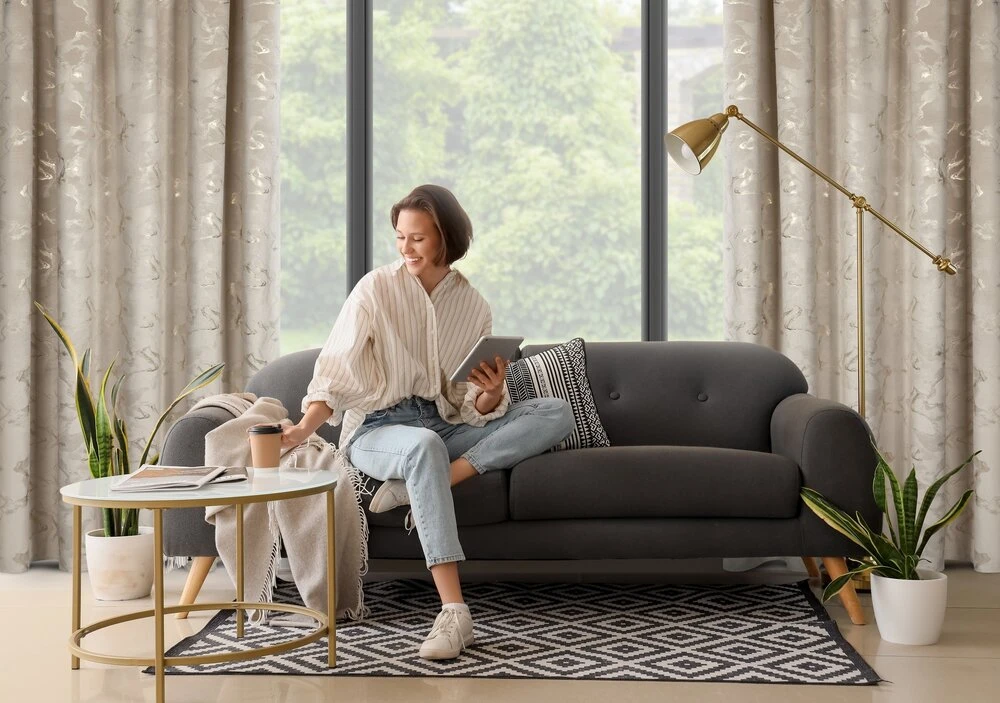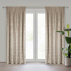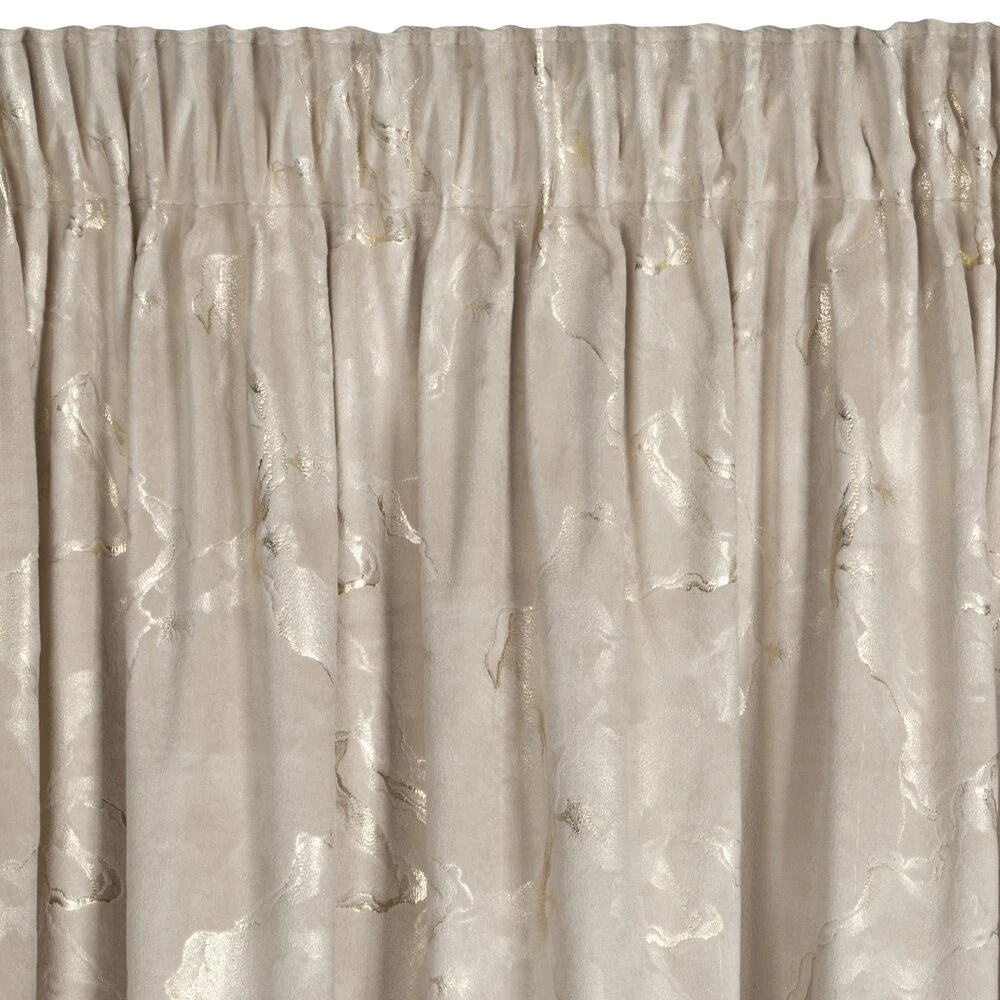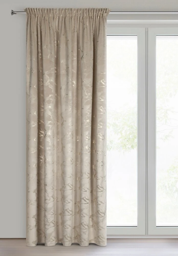 Welwetowa zasłona gotowa z nadrukiem błyszczącym szerokość: 140 cm, długość: 270 cm, kolor: beżowy, Gramatura: 200 GSM, Skład: 100% poliester
