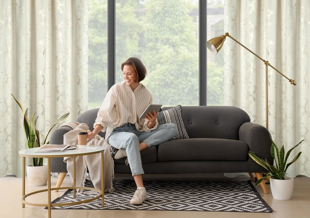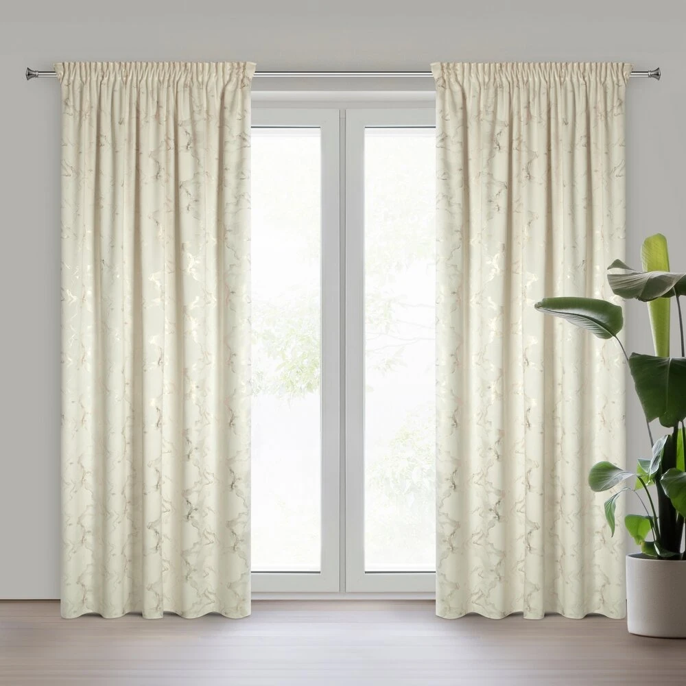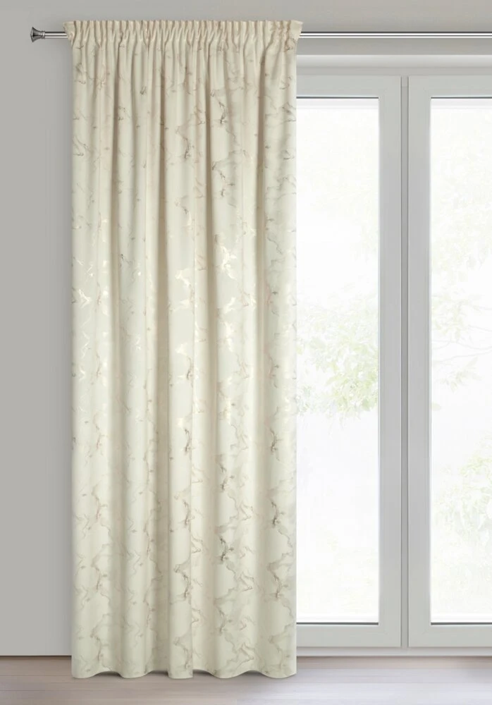 Welwetowa zasłona gotowa z nadrukiem błyszczącym szerokość: 140 cm, długość: 270 cm, kolor: kremowy, Gramatura: 200 GSM, Skład: 100% poliester