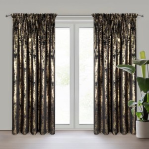 Zasłona gotowa welwetowa z błyszczącym nadrukiem szerokość: 140 cm, długość: 270 cm, kolor: czarny, Gramatura: 200 GSM, Skład: 100% poliester