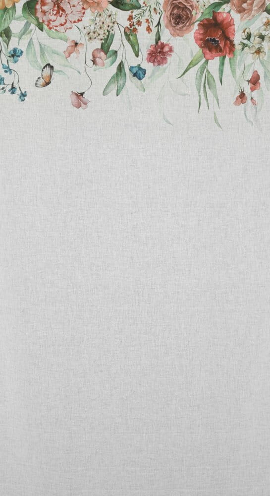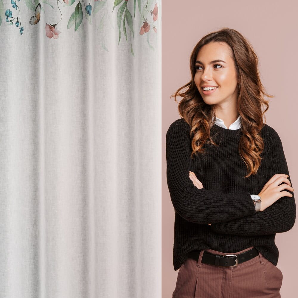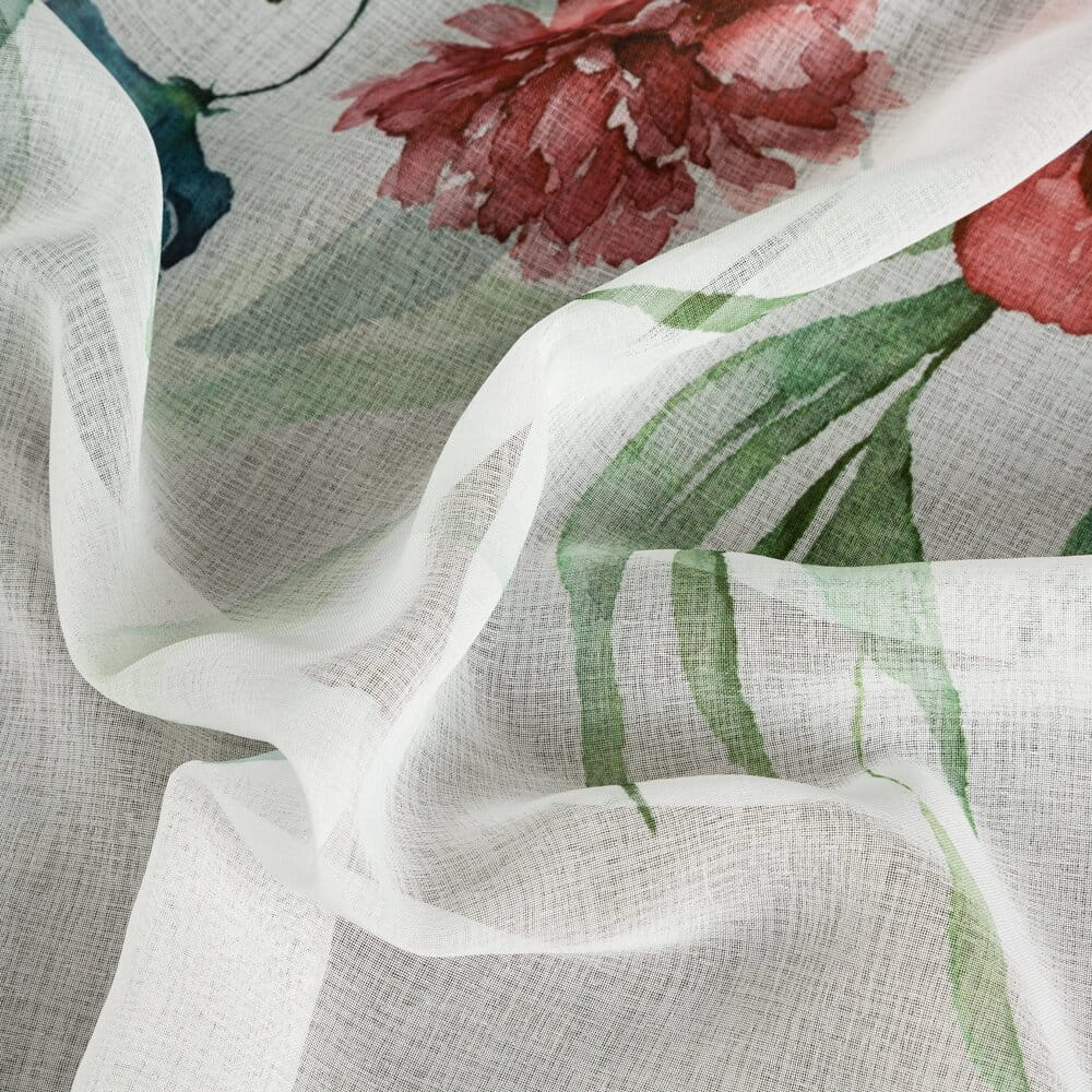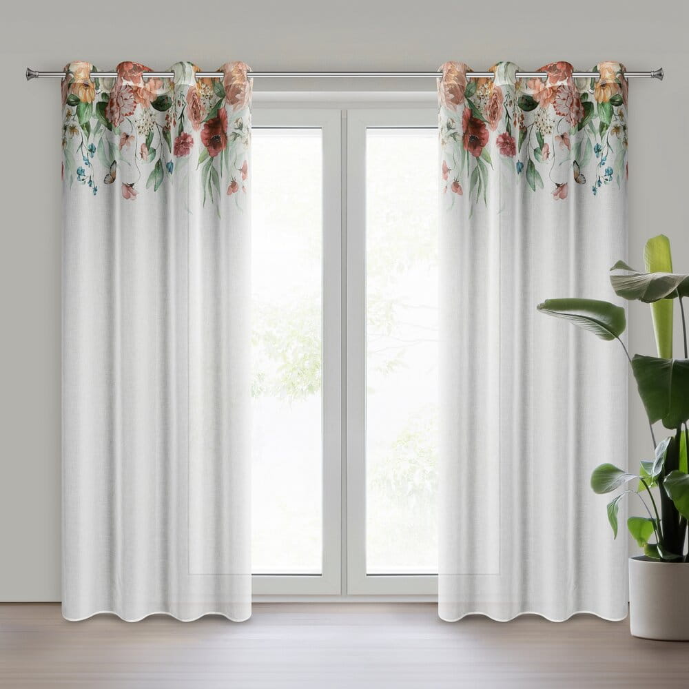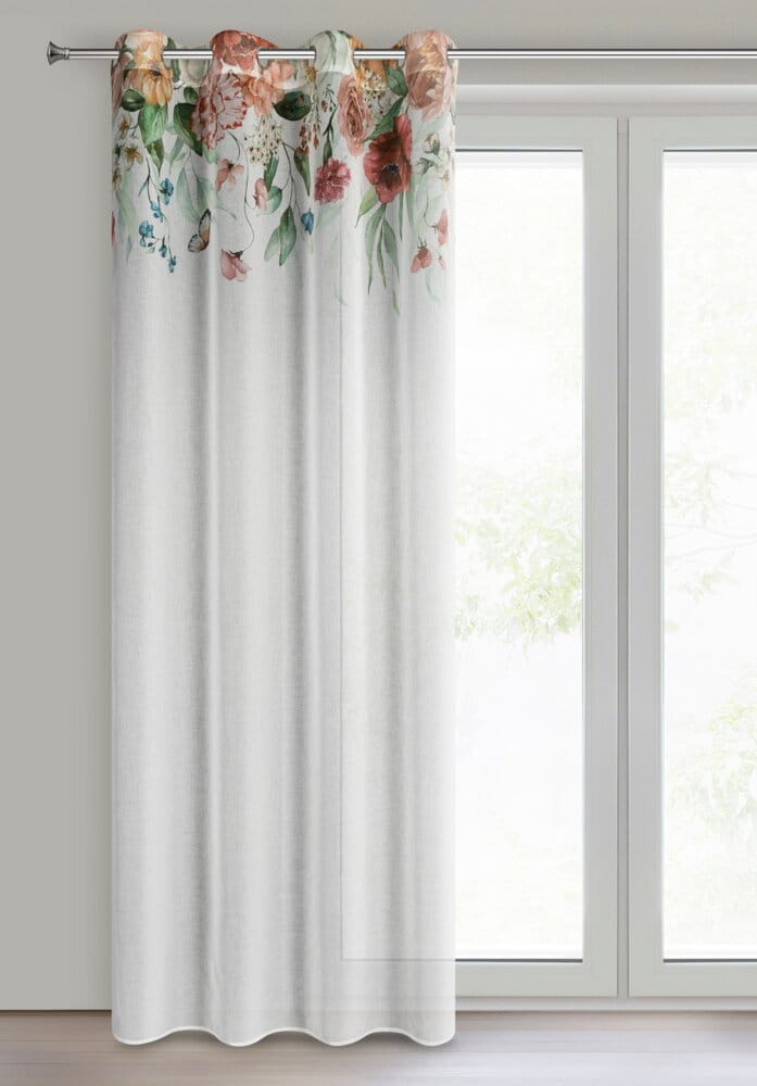 Zasłona gotowa z kwiatowym nadrukiem szerokość: 140 cm, długość: 250 cm, kolor: biały, Gramatura: 75 GSM, Skład: 100% poliester