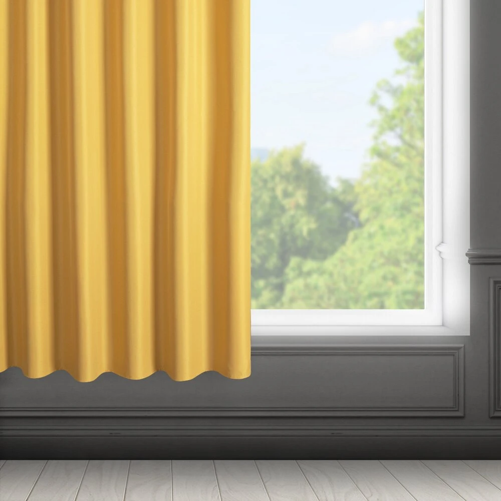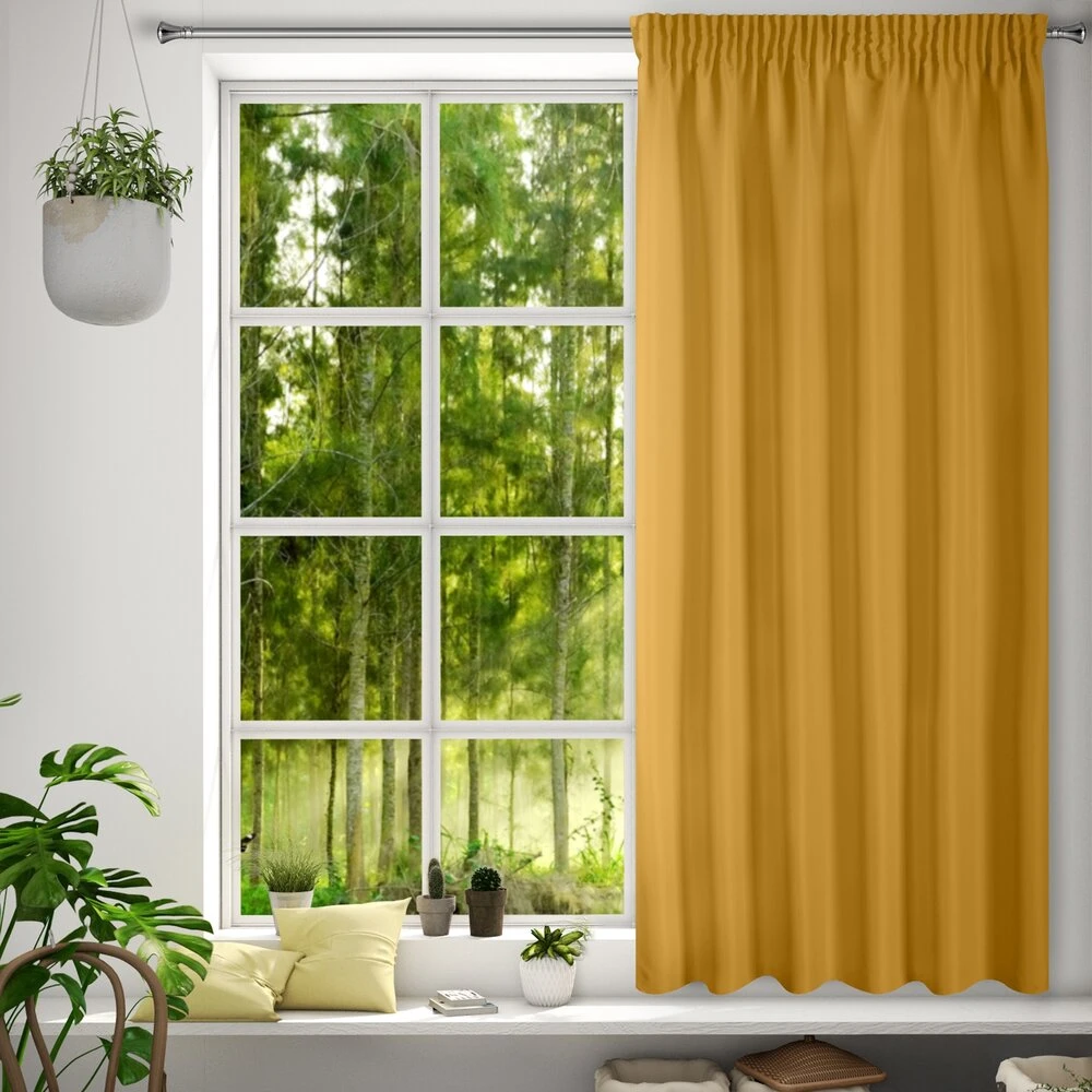 Piękna, jednokolorowa zasłona z miękkiej tkaniny o matowym wykończeniu i satynowym splocie. Uniwersalna dekoracja do każdego wnętrza. Łatwa w prasowaniu. szerokość: 140 cm, długość: 175 cm, kolor: musztardowy, Gramatura: 140 GSM, Skład: 100% poliester