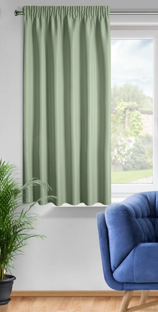 Zasłona gotowa jednokolorowa matowa szerokość: 140 cm, długość: 175 cm, kolor: oliwkowy, Gramatura: 140 GSM, Skład: 100% poliester