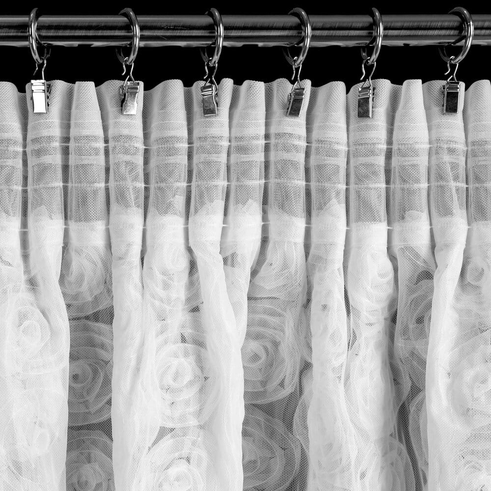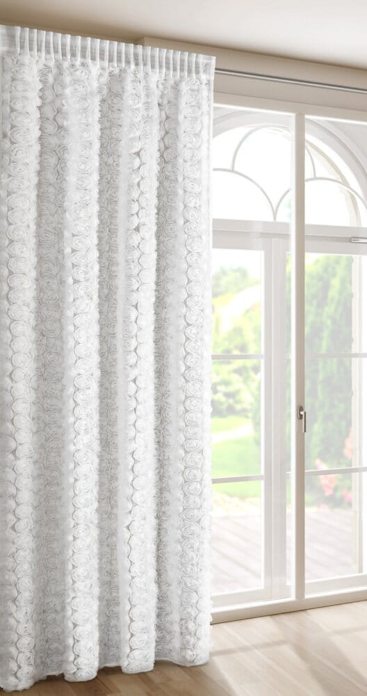 Zasłona gotowa z siatki z różami po całości szerokość: 140 cm, długość: 270 cm, kolor: biały, Gramatura: 50 GSM, Skład: 100% poliester