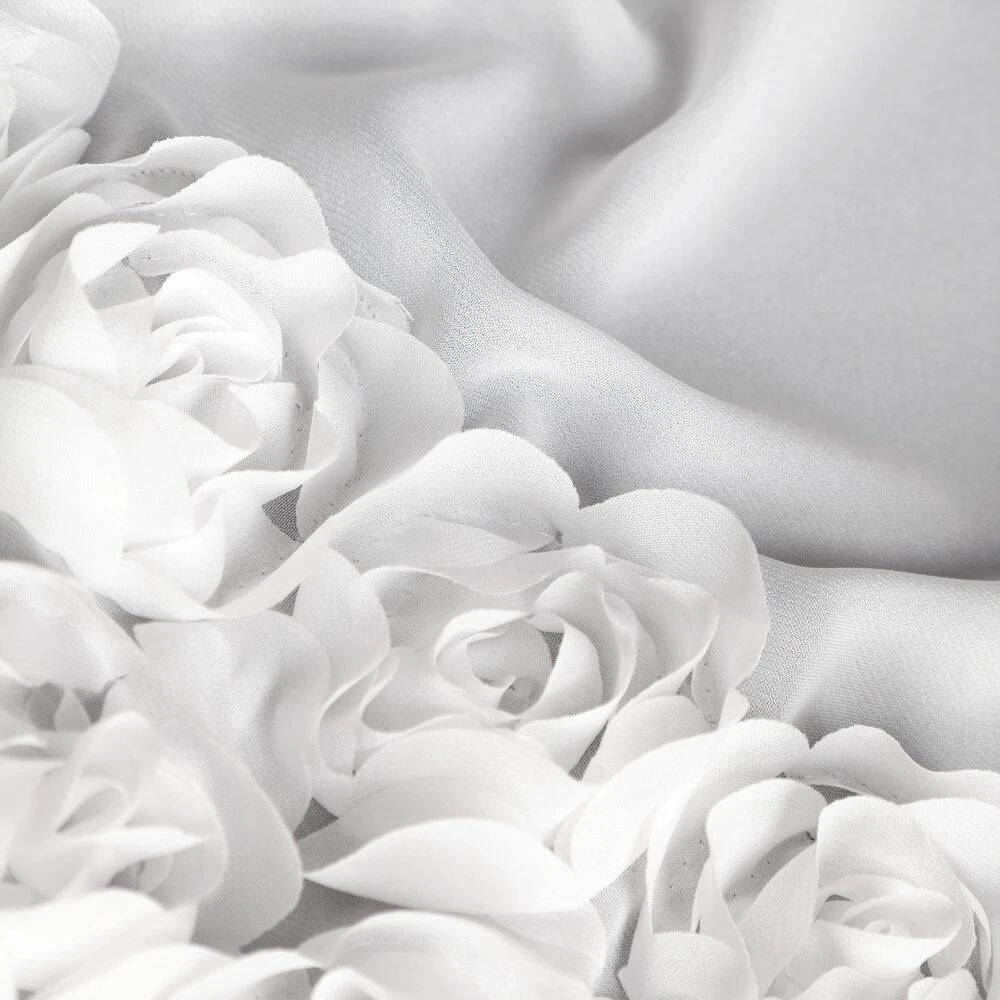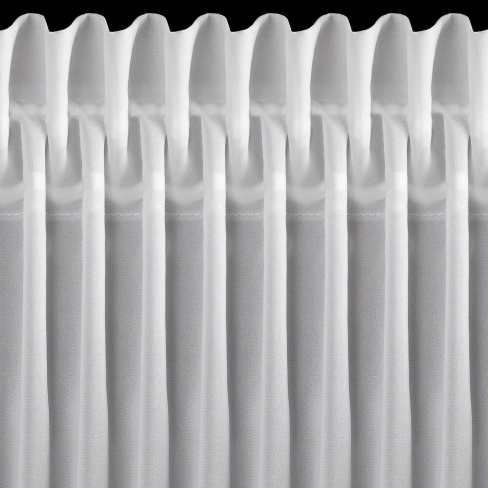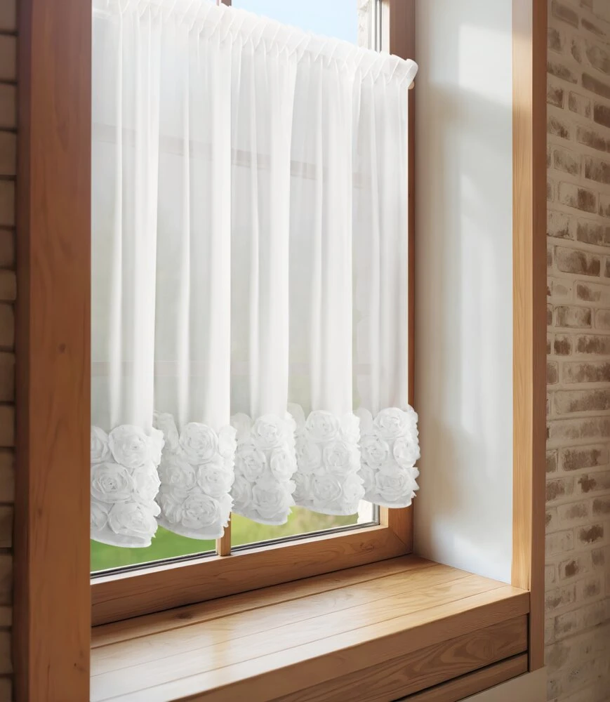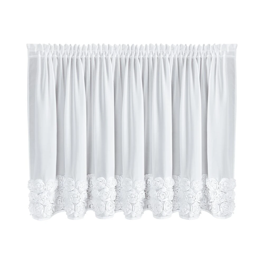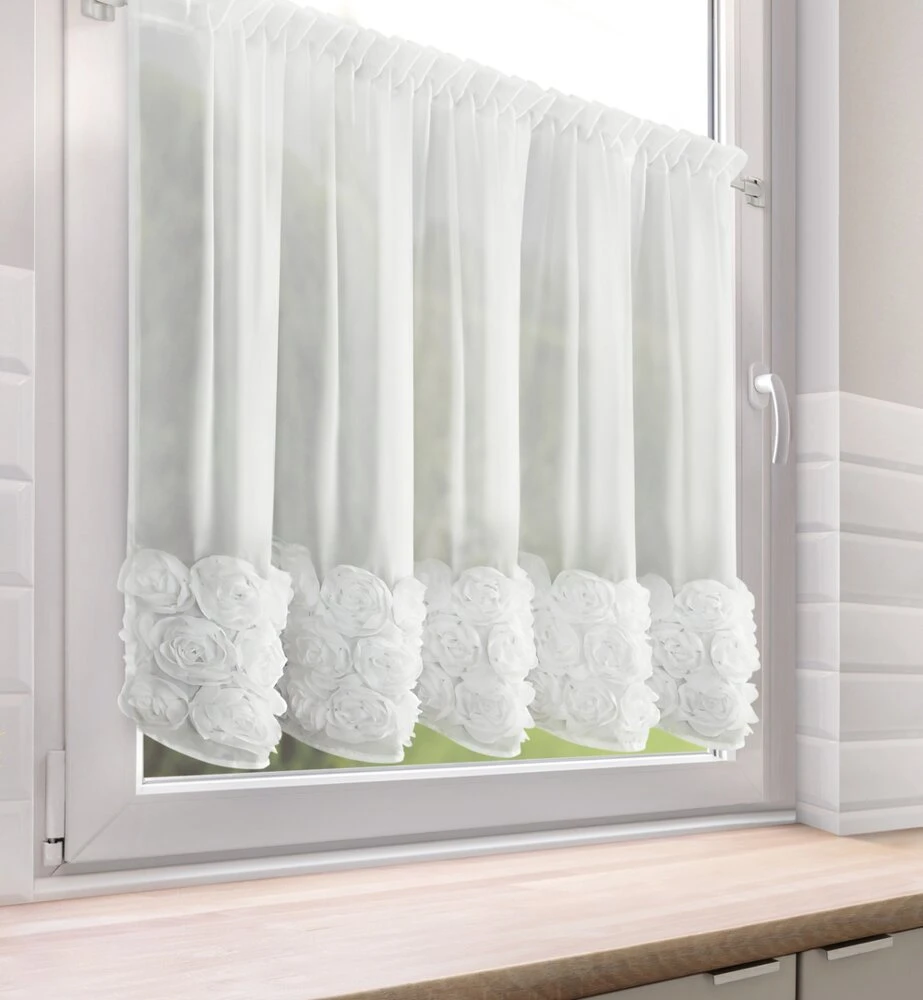 Zazdrostka gotowa z szyfonu z 3 pasami róż szerokość: 150 cm, długość: 90 cm, kolor: biały, Gramatura: 60 GSM, Skład: 100% poliester