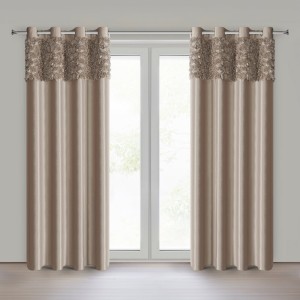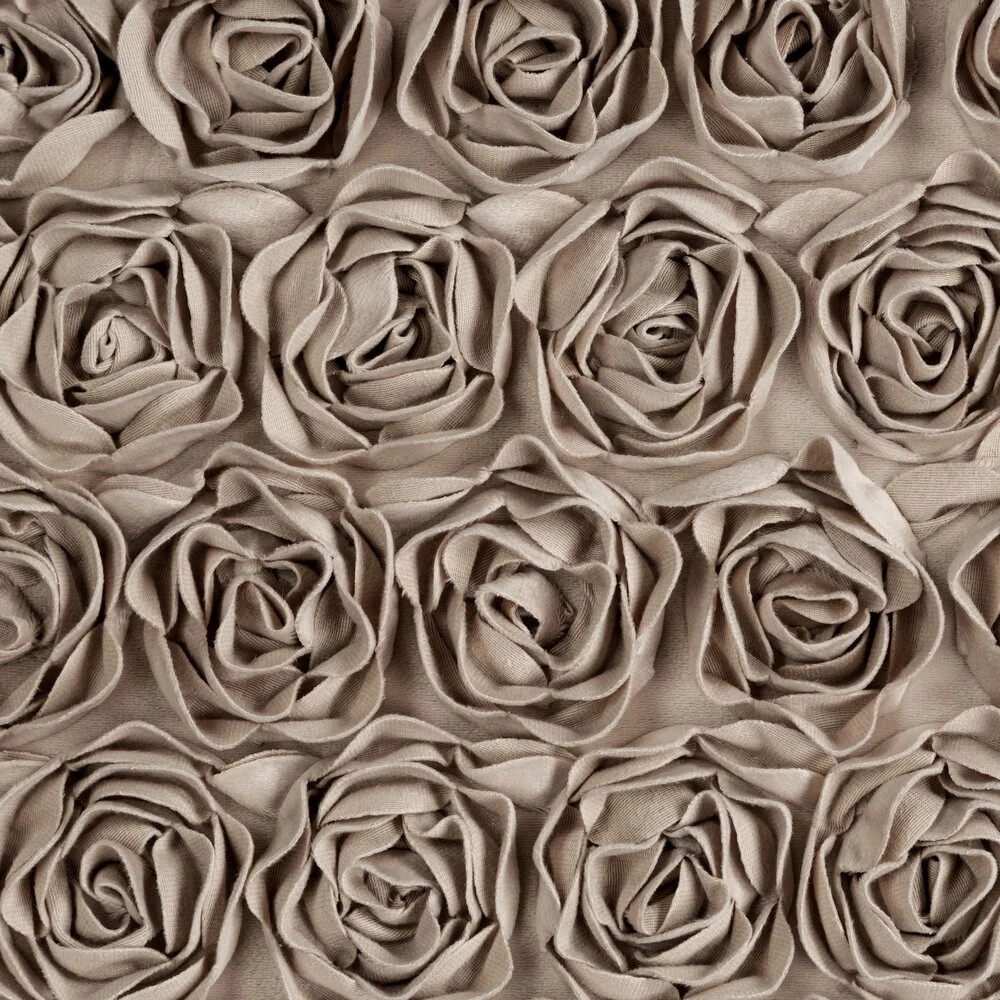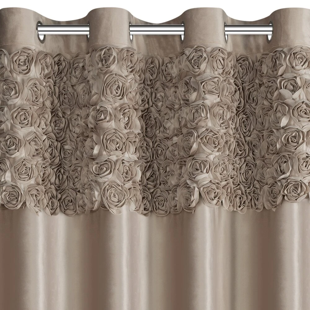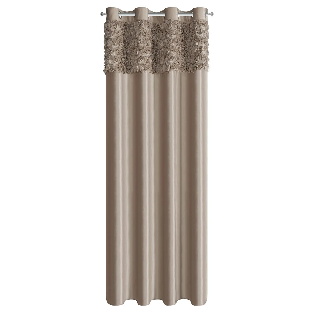 Zasłona gotowa welwetowa z 6 pasami ozdobnych róż szerokość: 140 cm, długość: 250 cm, kolor: ciemnobeżowy, Gramatura: 200 GSM, Skład: 100% poliester