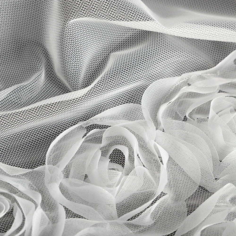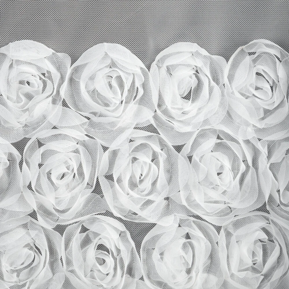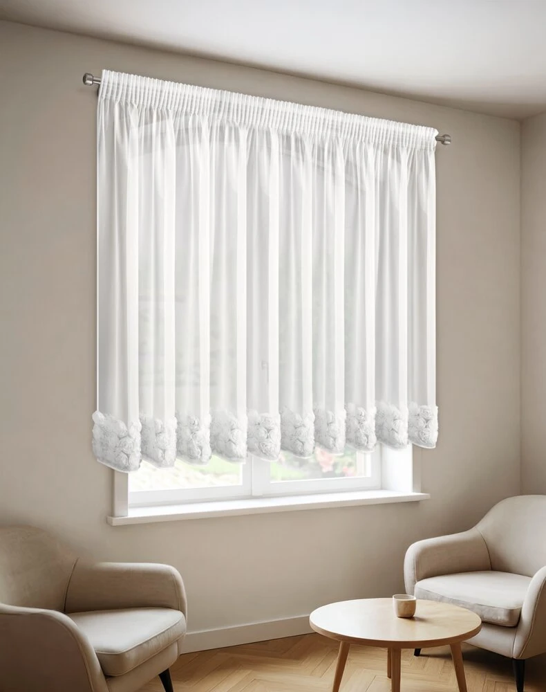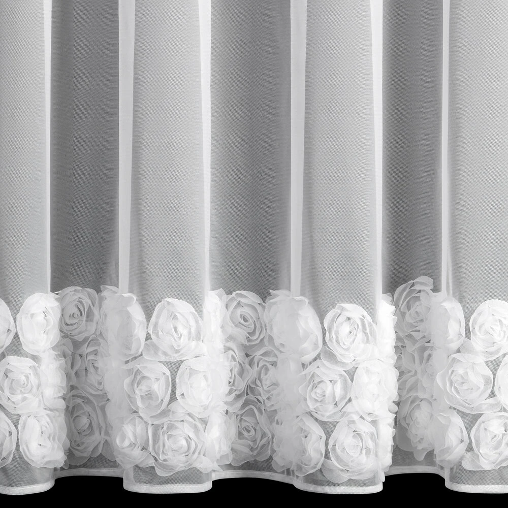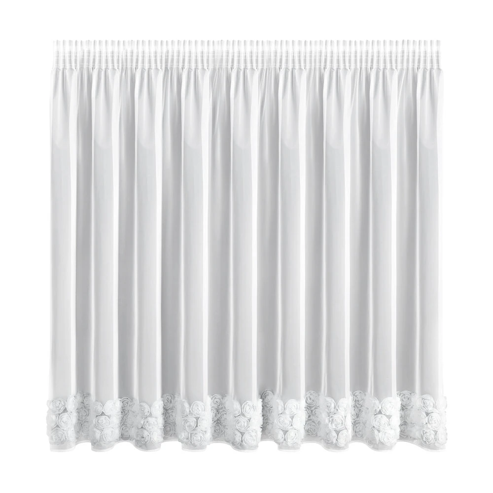 Firana gotowa z siatki z 3 pasami róż szerokość: 350 cm, długość: 160 cm, kolor: biały, Gramatura: 50 GSM, Skład: 100% poliester
