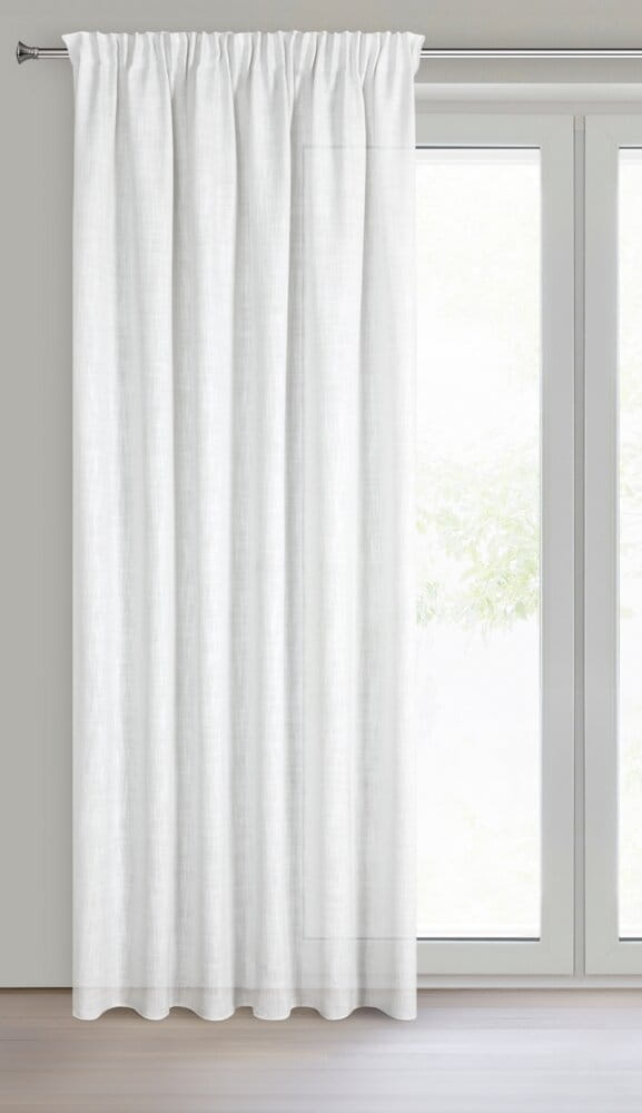 Zasłona w stylu eko, z dodatkiem lnu oraz z delikatnym połyskiem szerokość: 140 cm, długość: 270 cm, kolor: biały, Gramatura: 280 GSM, Skład: 98% poliester, 2% len