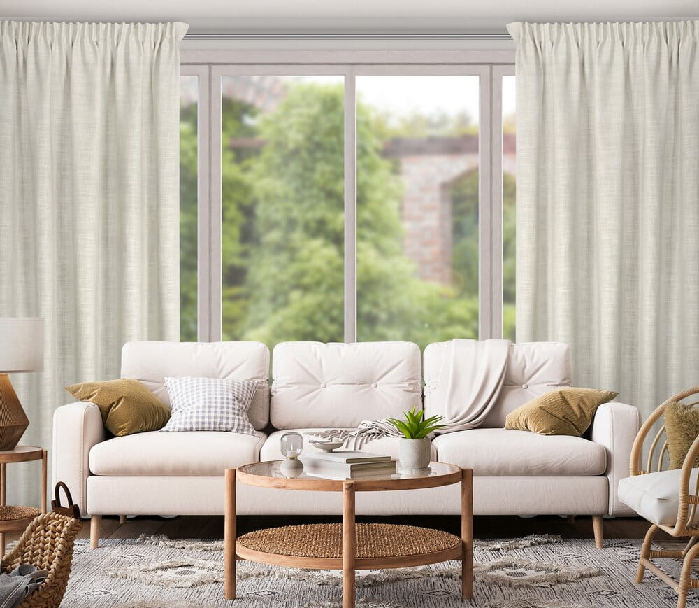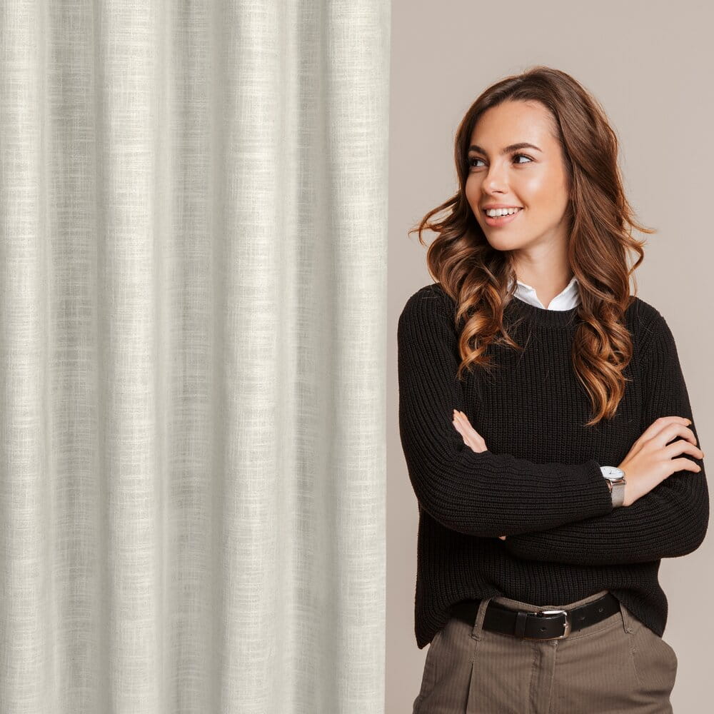 Zasłona w stylu eko, z dodatkiem lnu oraz z delikatnym połyskiem szerokość: 140 cm, długość: 270 cm, kolor: ciemnobeżowy, Gramatura: 280 GSM, Skład: 95% poliester, 5% len