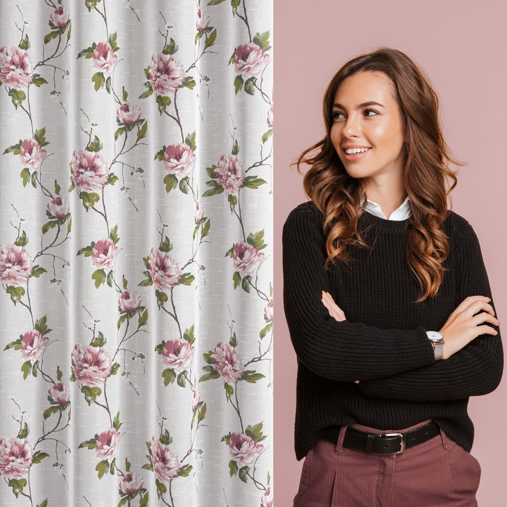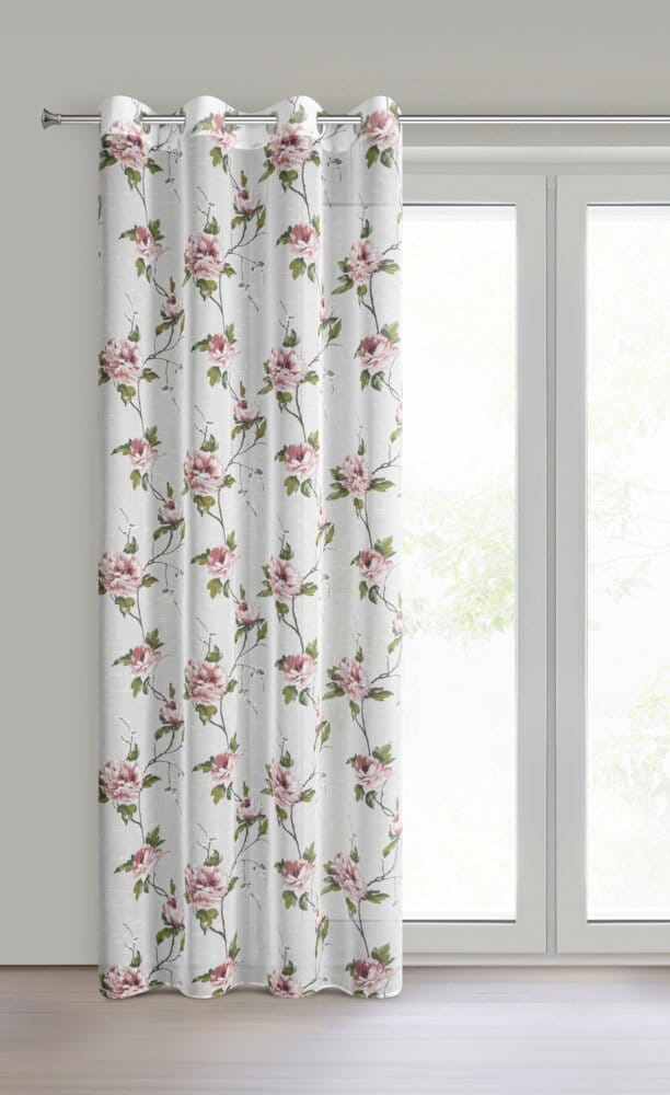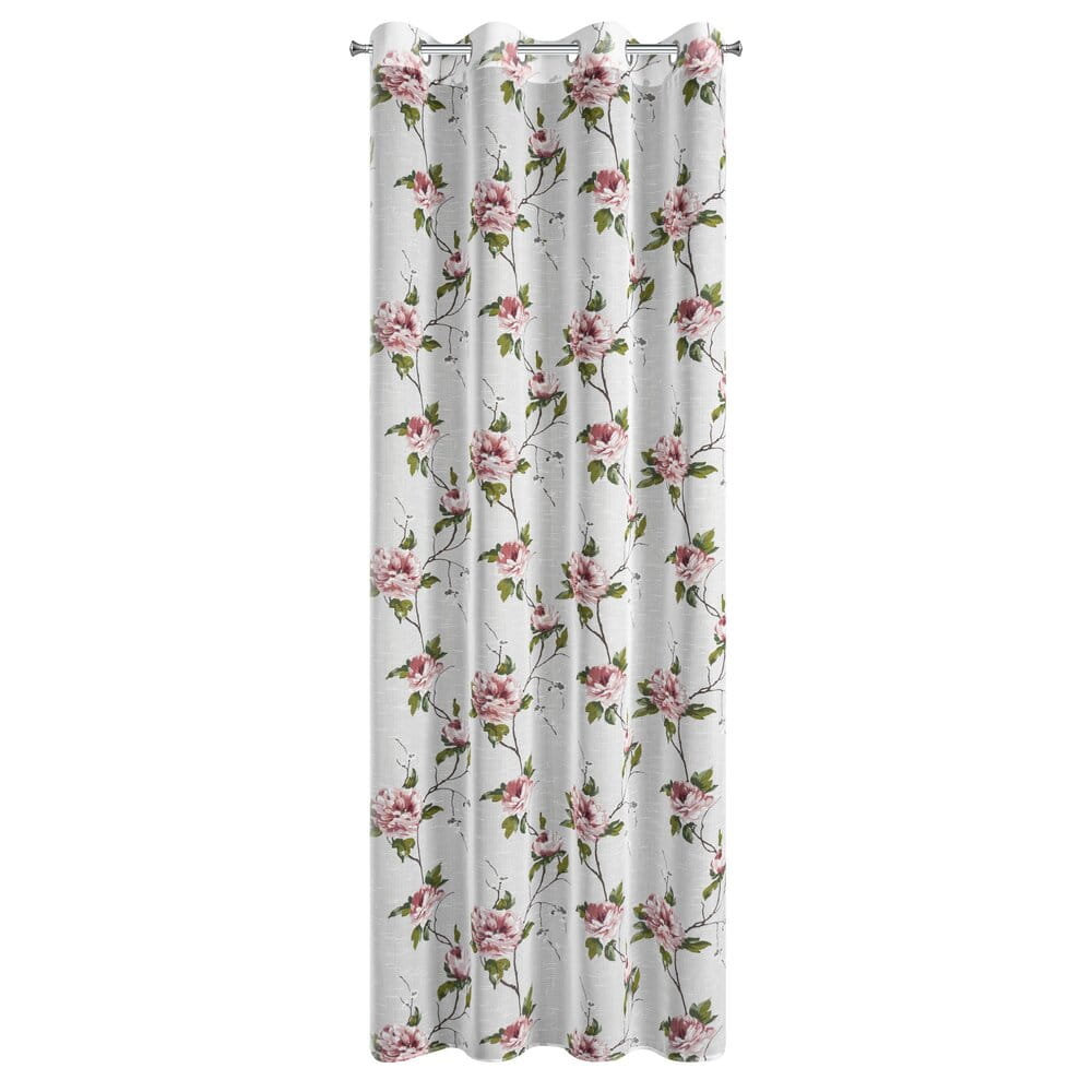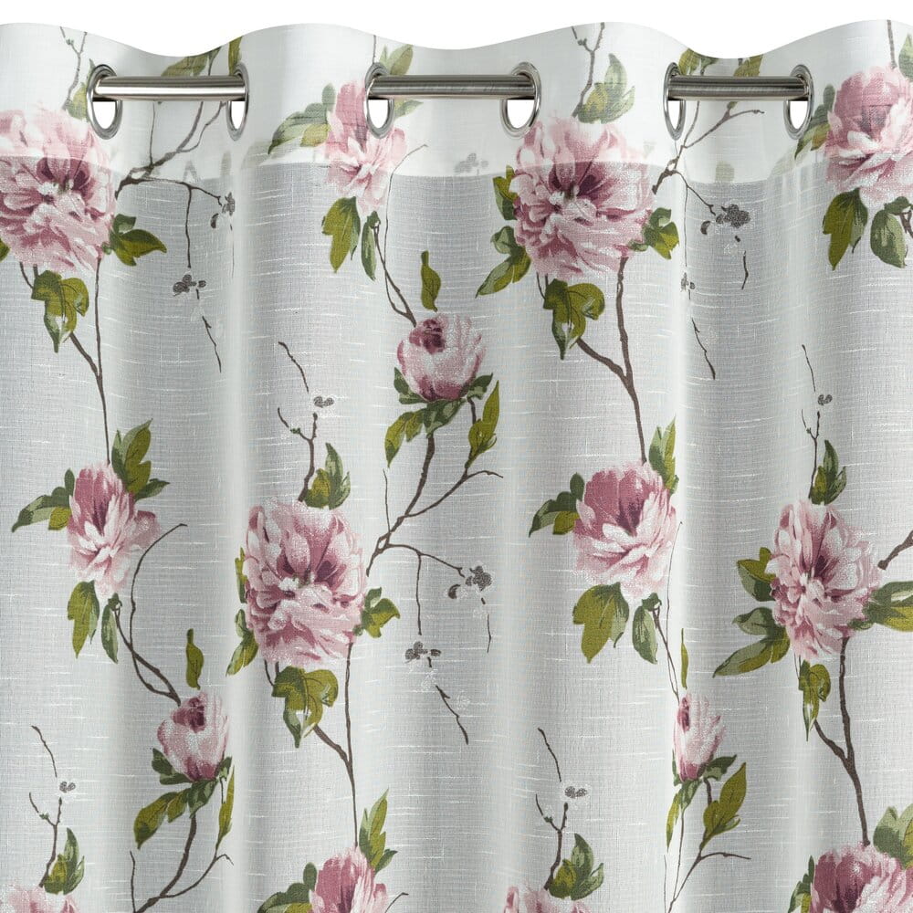 Zasłona w stylu eco z kwiatowym nadrukiem szerokość: 135 cm, długość: 250 cm, kolor: biały, Gramatura: 80 GSM, Skład: 100% poliester