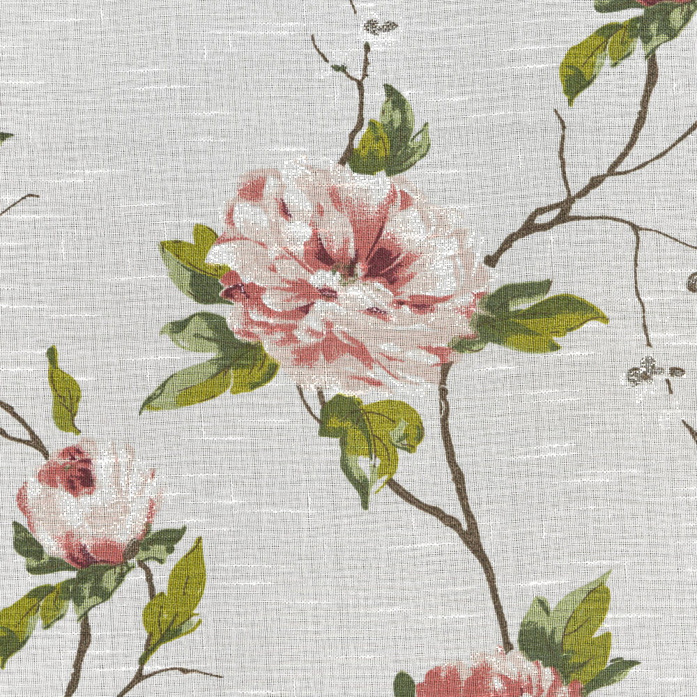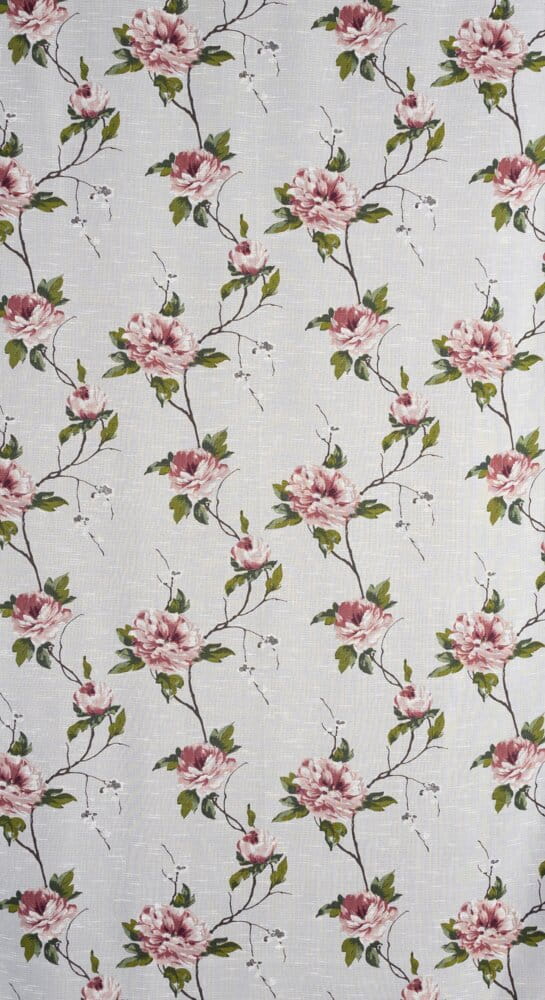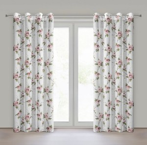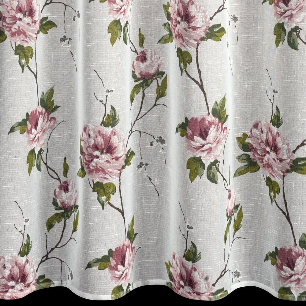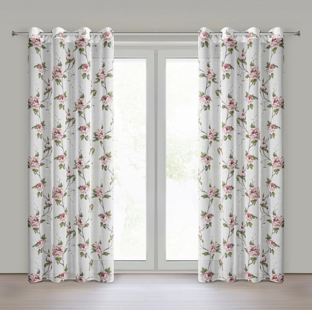 Zasłona w stylu eco z kwiatowym nadrukiem szerokość: 135 cm, długość: 250 cm, kolor: biały, Gramatura: 80 GSM, Skład: 100% poliester