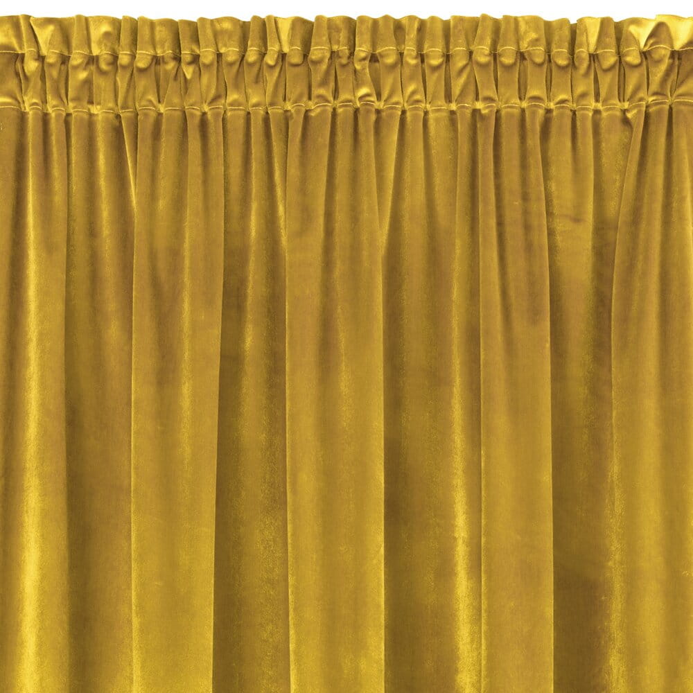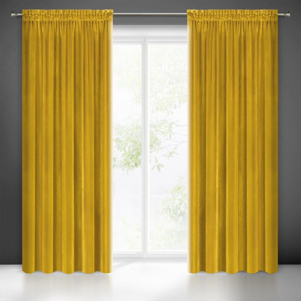 Lekka, welwetowa zasłona z miękkiej tkaniny o subtelnym połysku, charakterystycznym dla welwetów. Miękko się układa. Prasować na lewą stronę. szerokość: 140 cm, długość: 270 cm, kolor: musztardowy, Gramatura: 190 GSM, Skład: 100% poliester