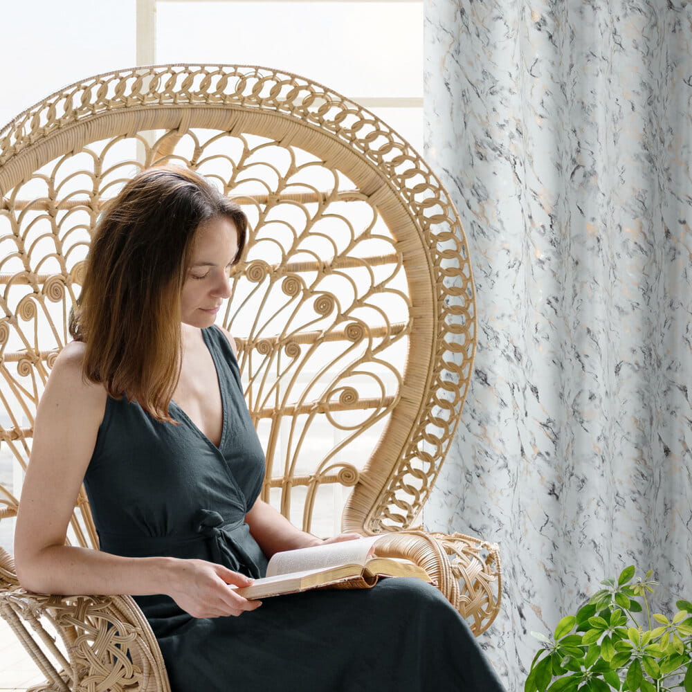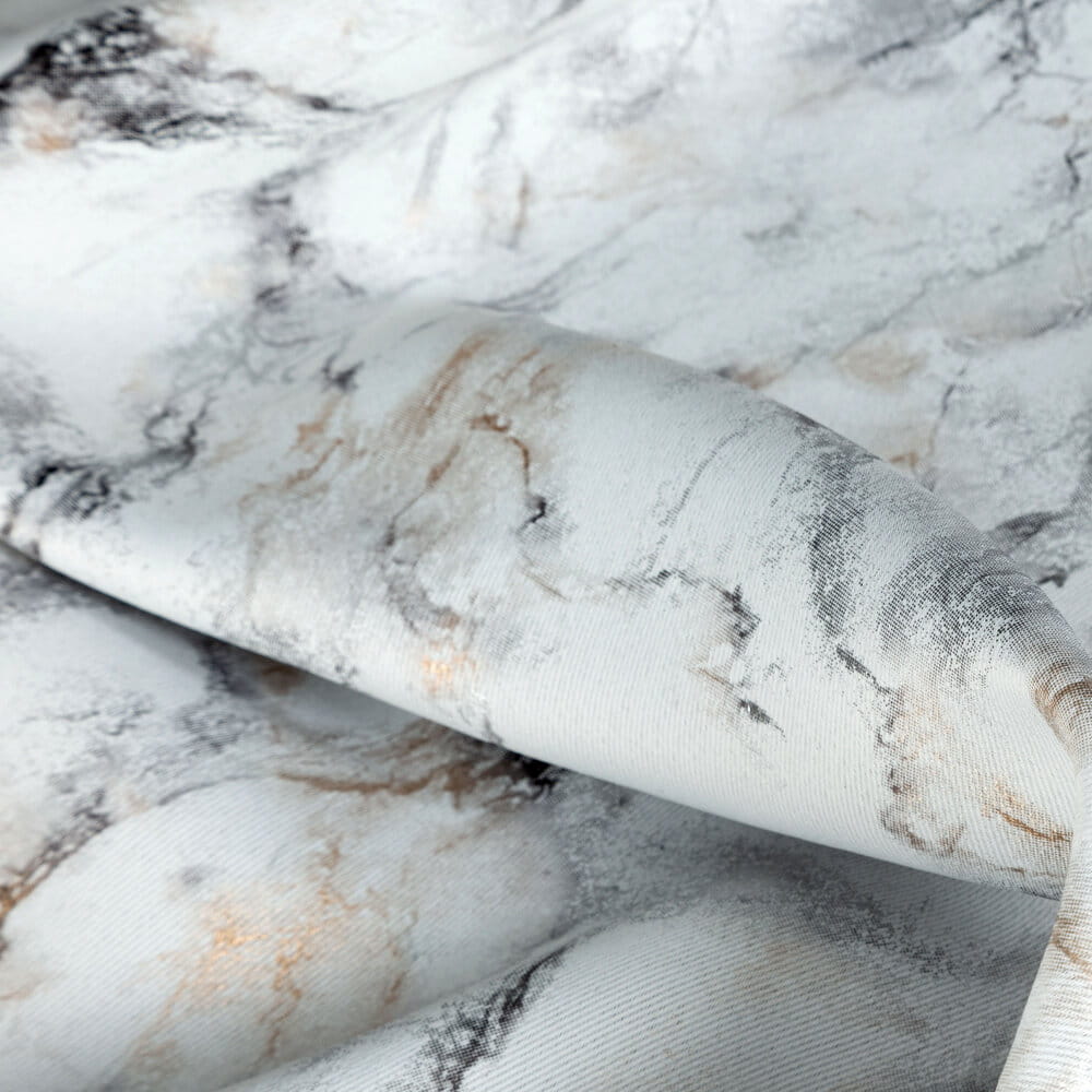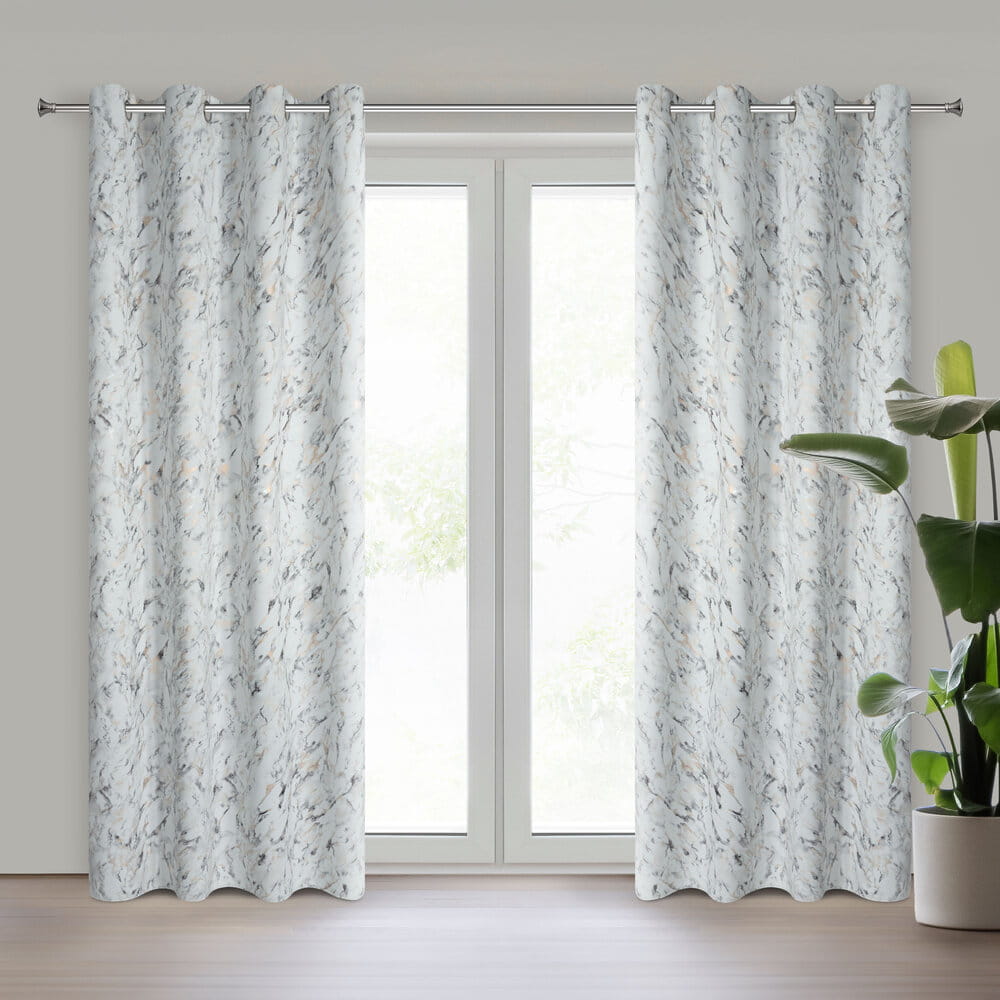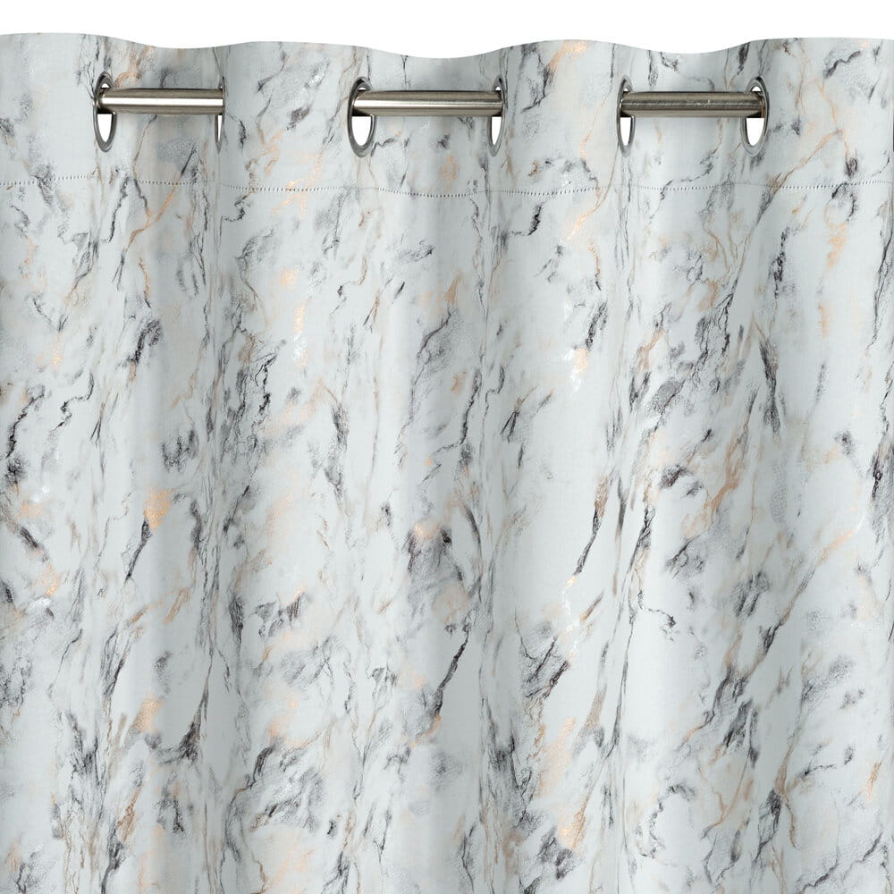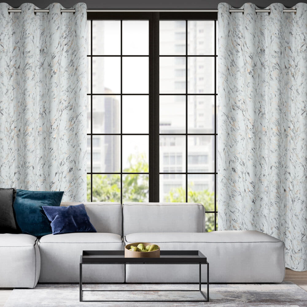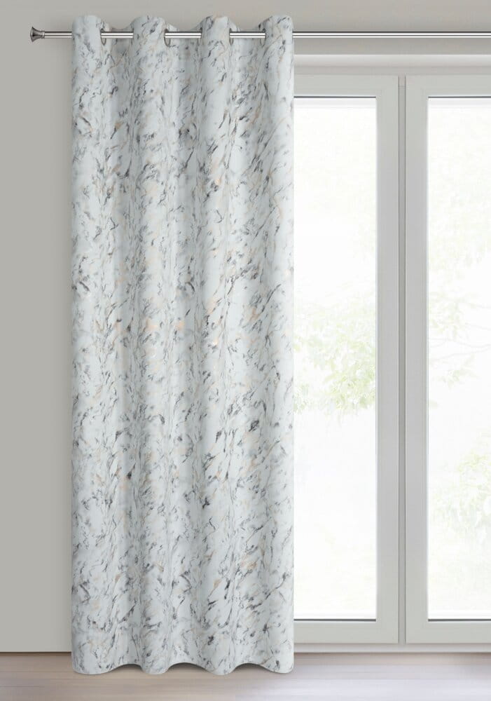 Zasłona zaciemniająca z nadrukiem błyszczącym szerokość: 140 cm, długość: 250 cm, kolor: srebrny, Gramatura: 210 GSM, Skład: 100% poliester