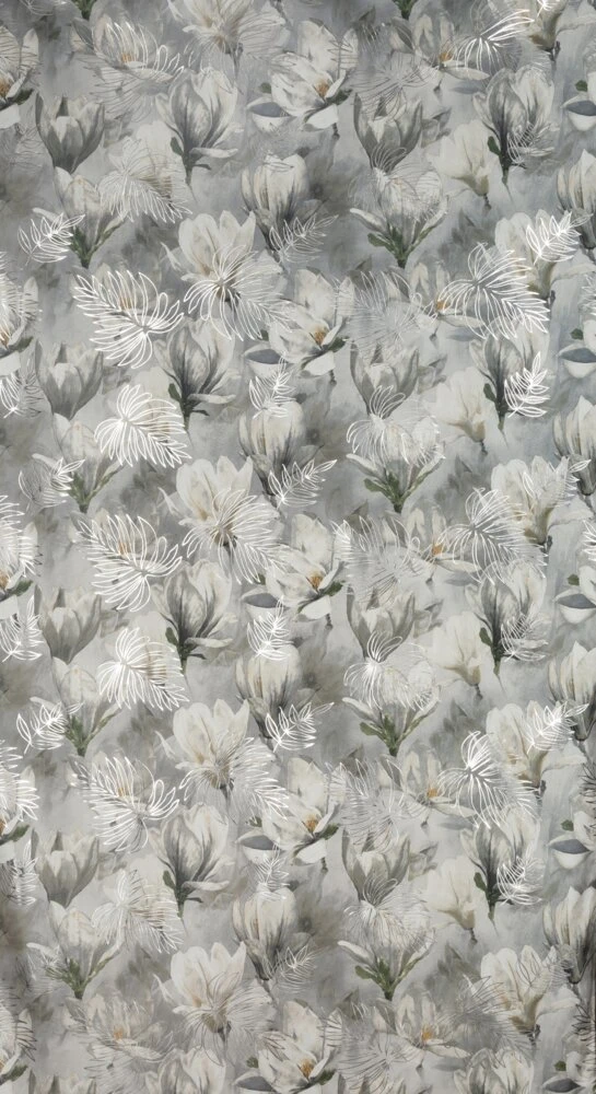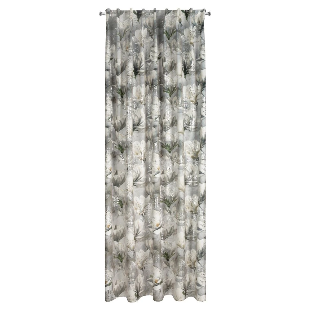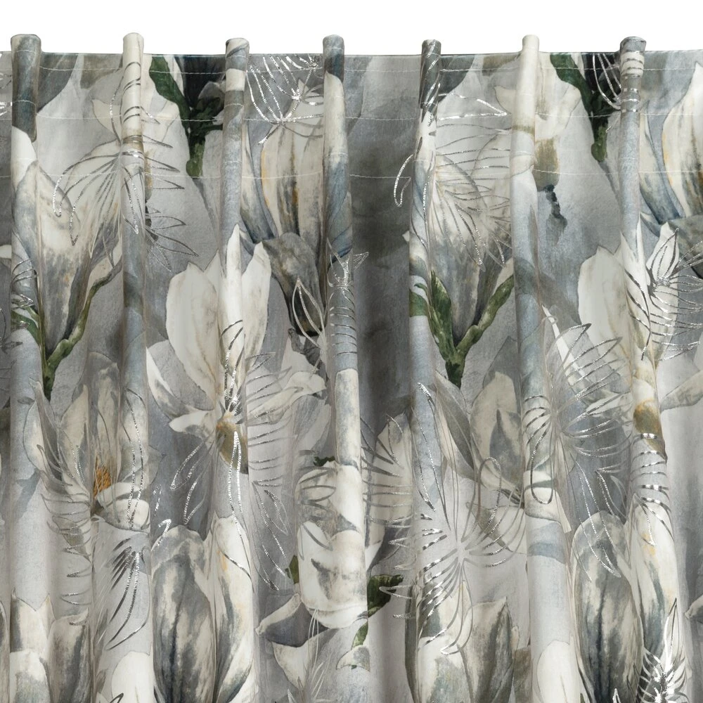 Zasłona welwetowa ze srebrnym nadrukiem szerokość: 140 cm, długość: 300 cm, kolor: stalowy, Gramatura: 200 GSM, Skład: 100% poliester