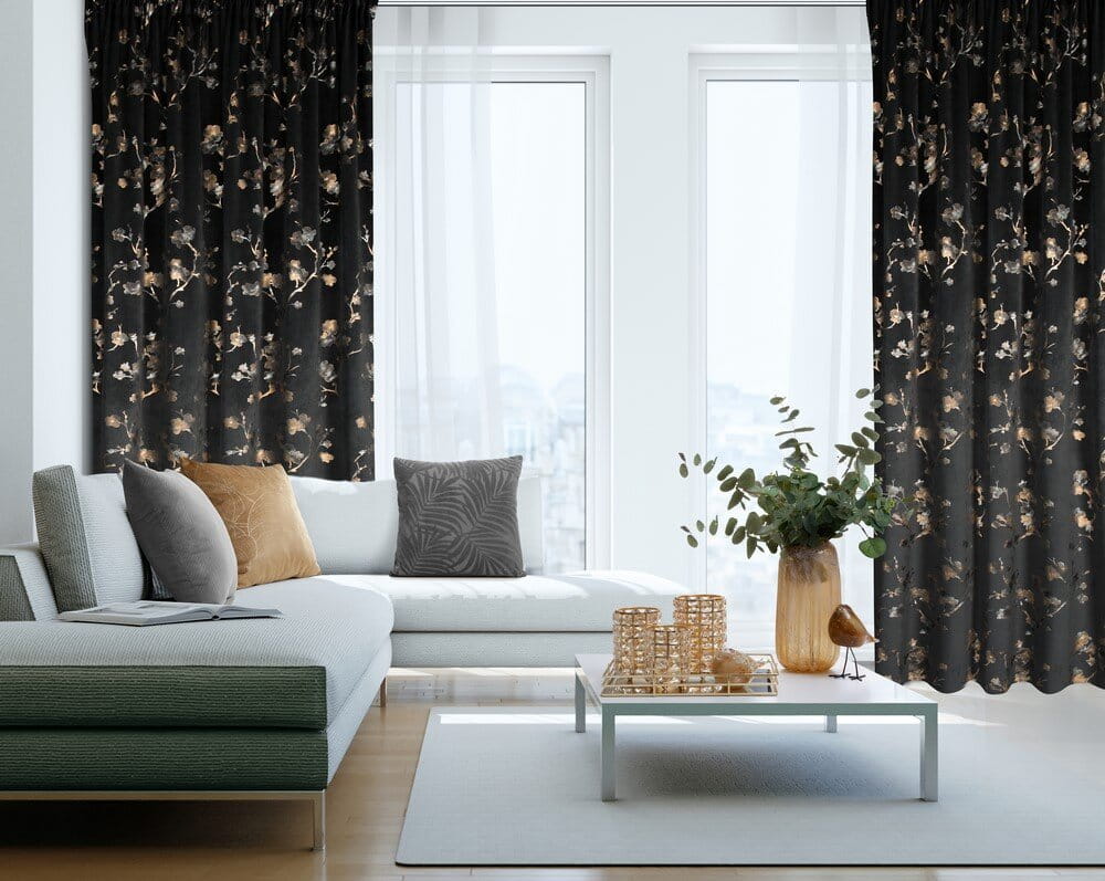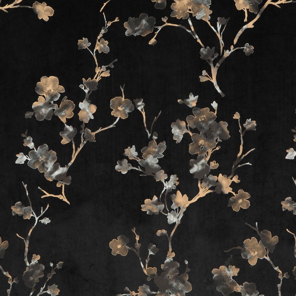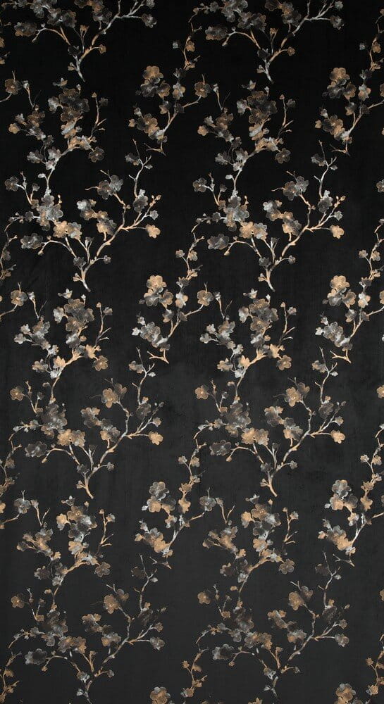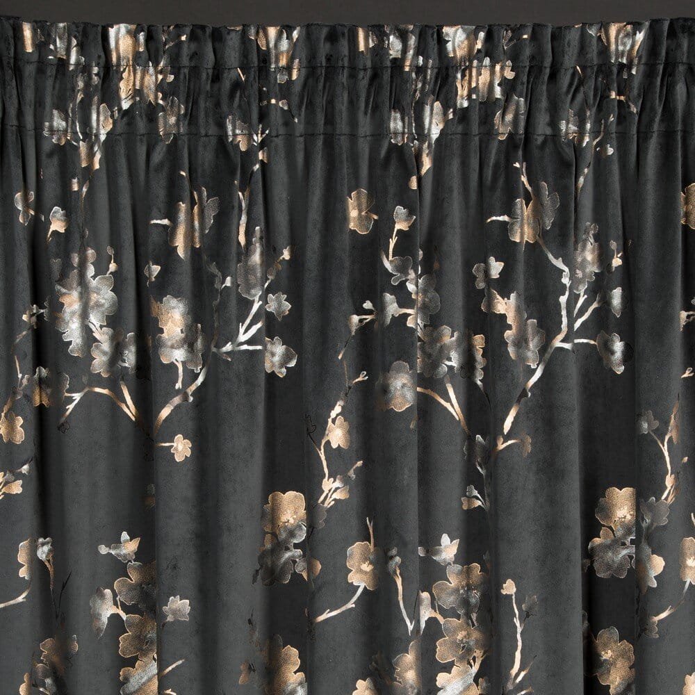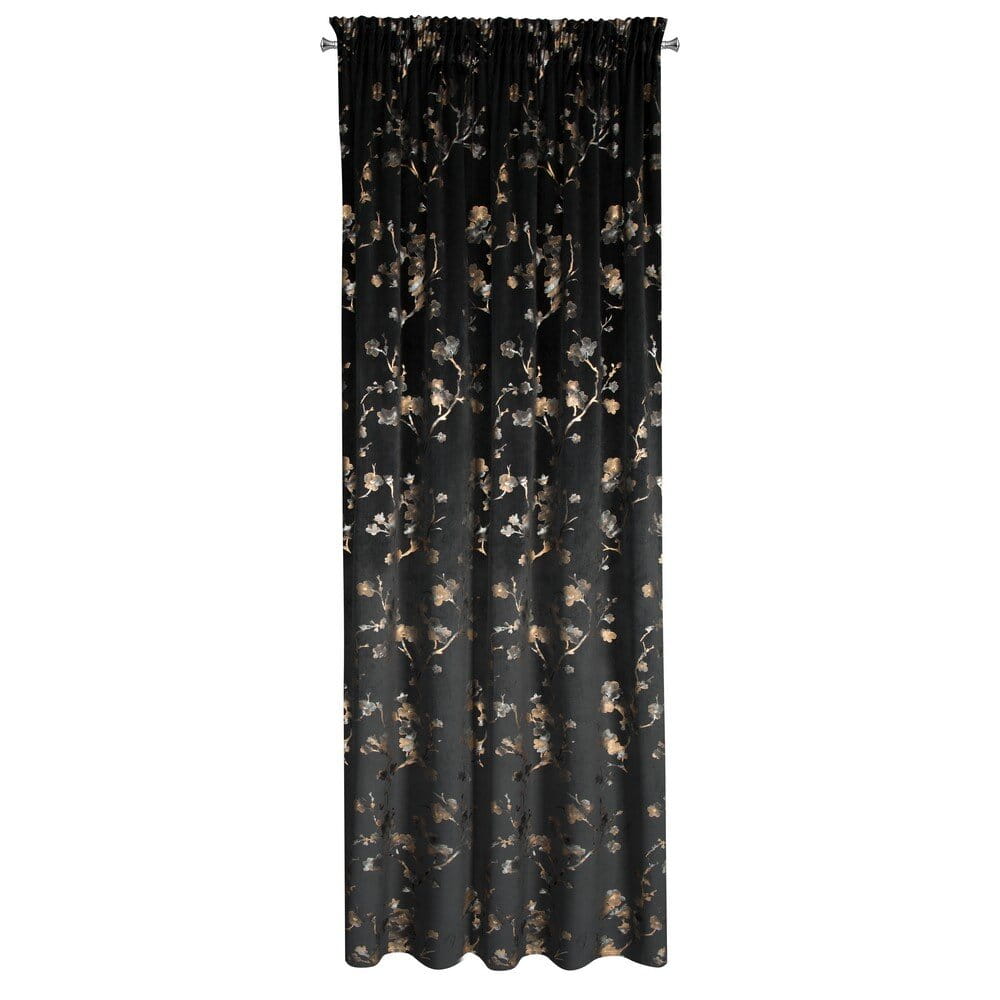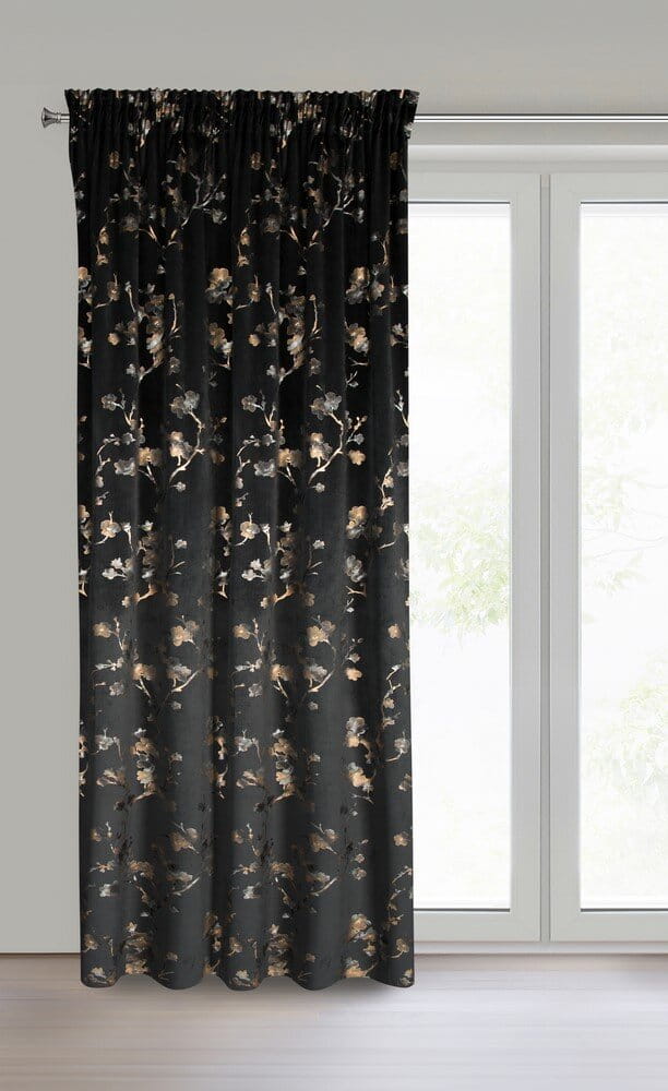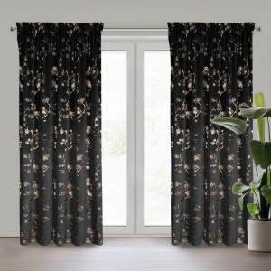 Zasłona gotowa welwetowa z błyszczącym nadrukiem szerokość: 140 cm, długość: 270 cm, kolor: czarny, Gramatura: 200 GSM, Skład: 100% poliester