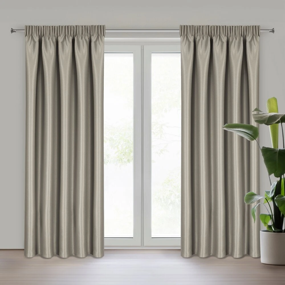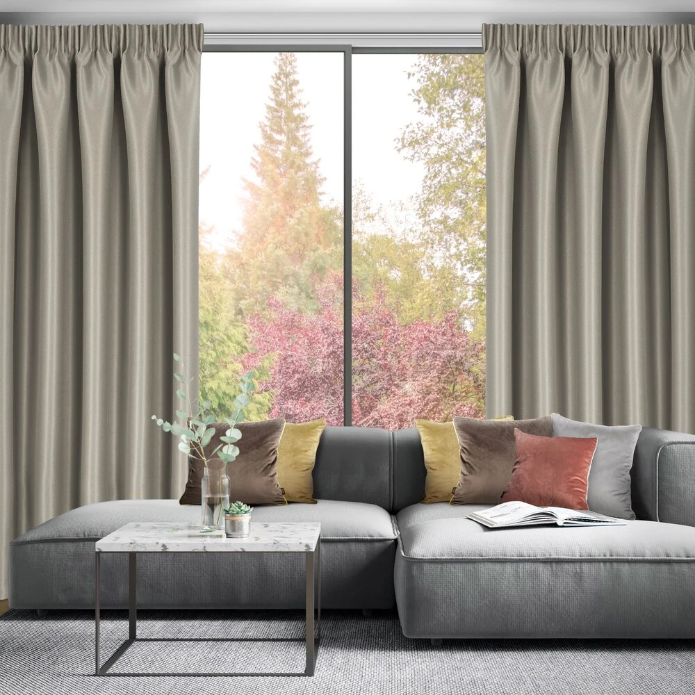 Zasłona zaciemniająca z błyszczącą nicią szerokość: 140 cm, długość: 270 cm, kolor: ciemnobeżowy, Gramatura: 300 GSM, Skład: 100% poliester
