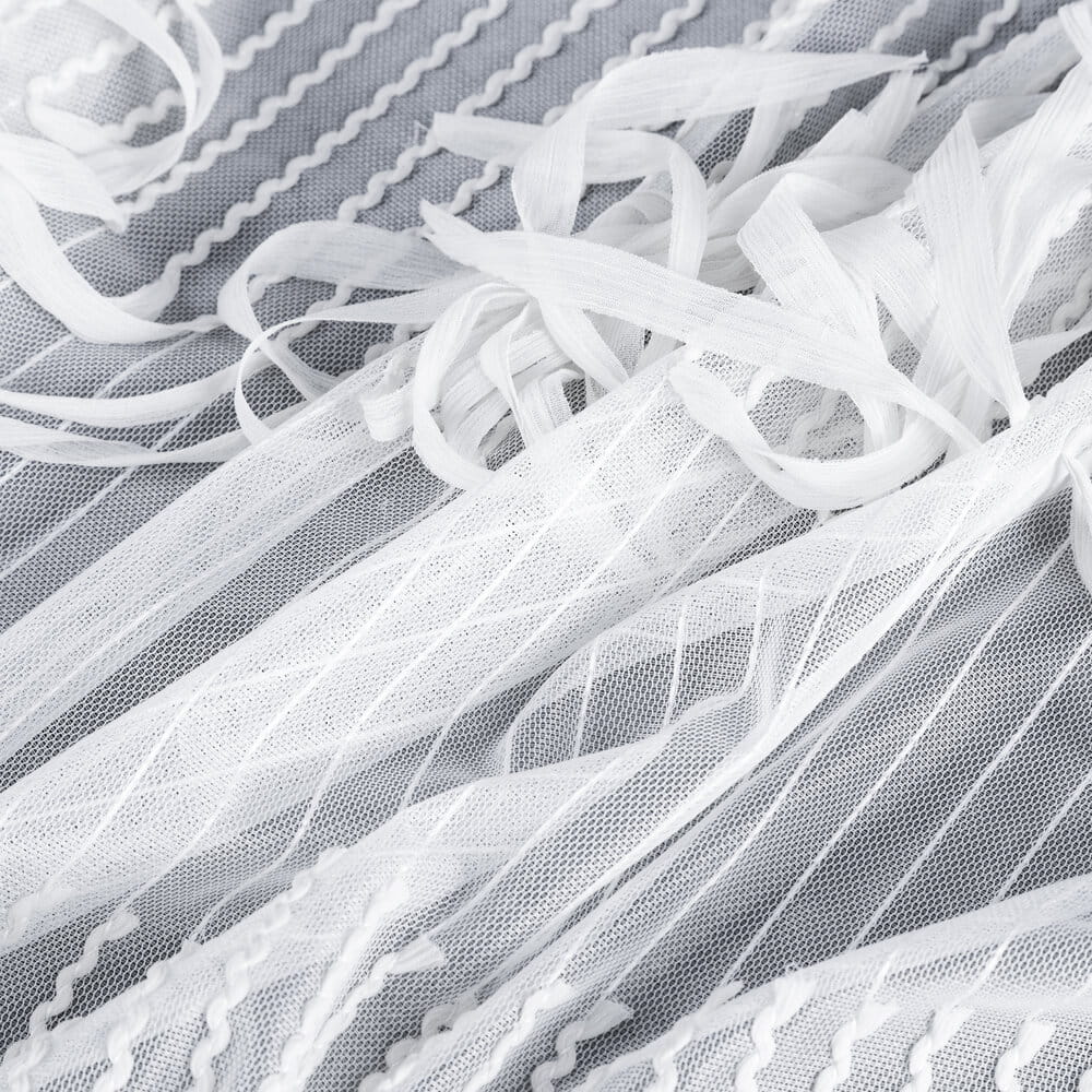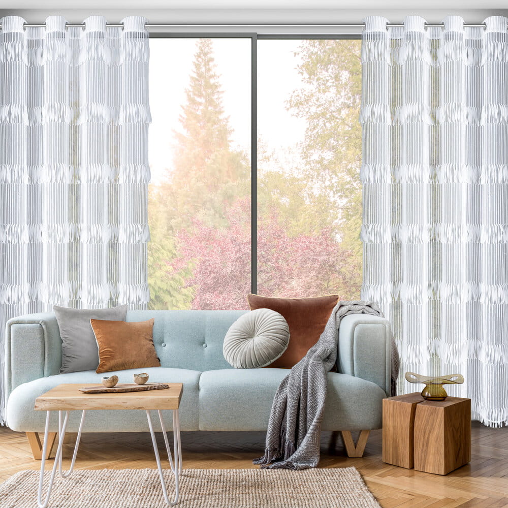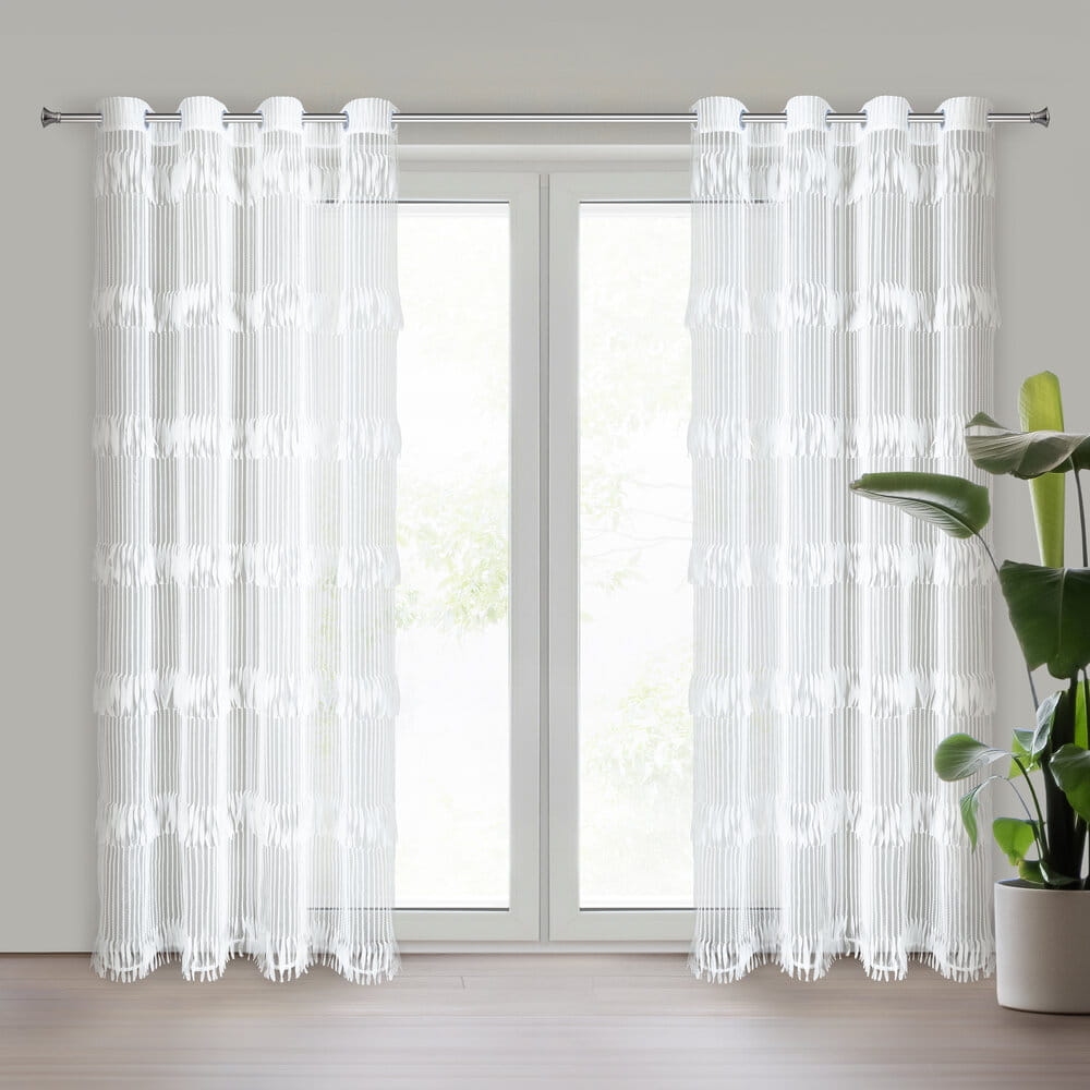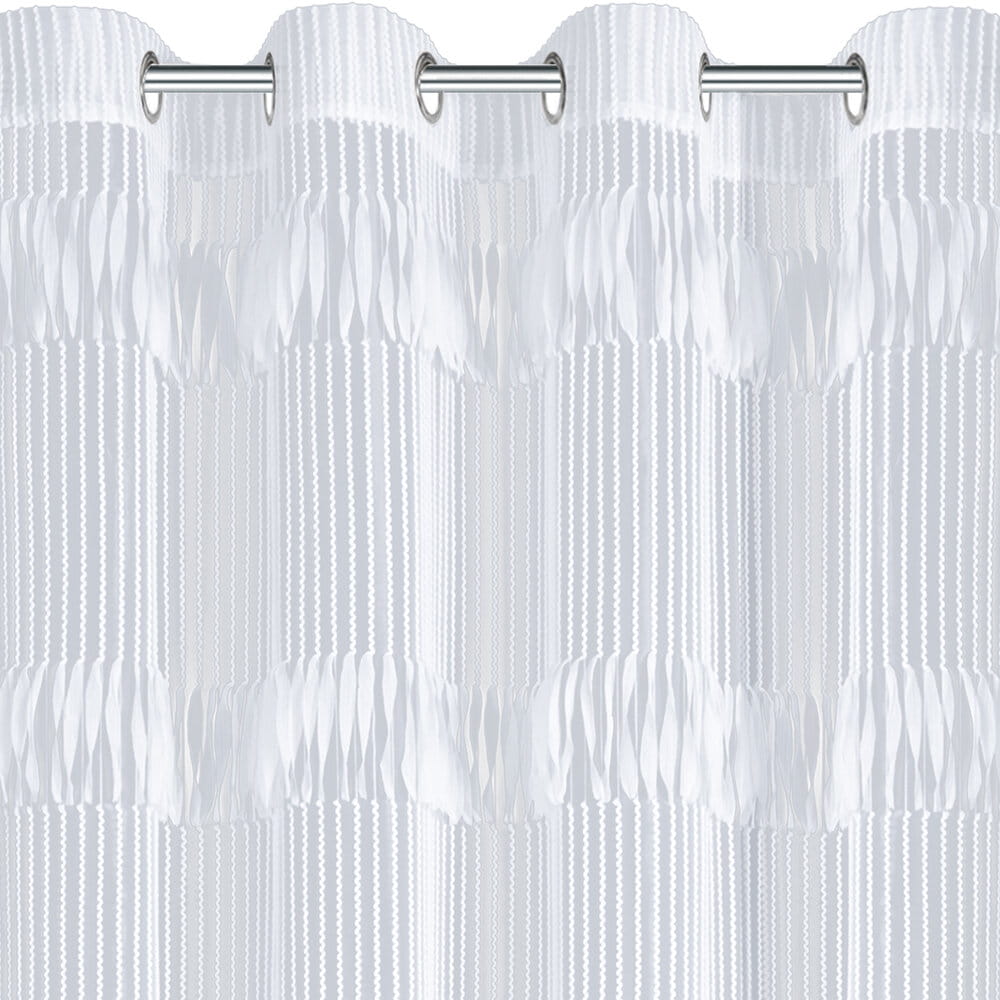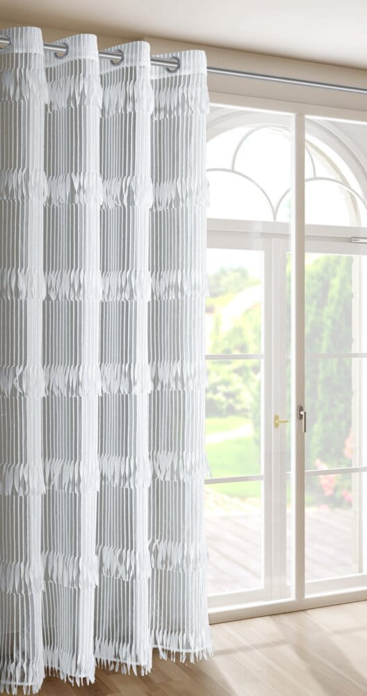Zasłona gotowa zdobiona frędzlami szerokość: 140 cm, długość: 250 cm, kolor: biały, Skład: 100% poliester