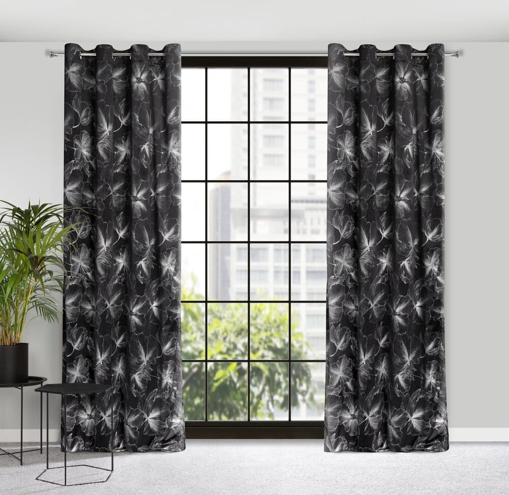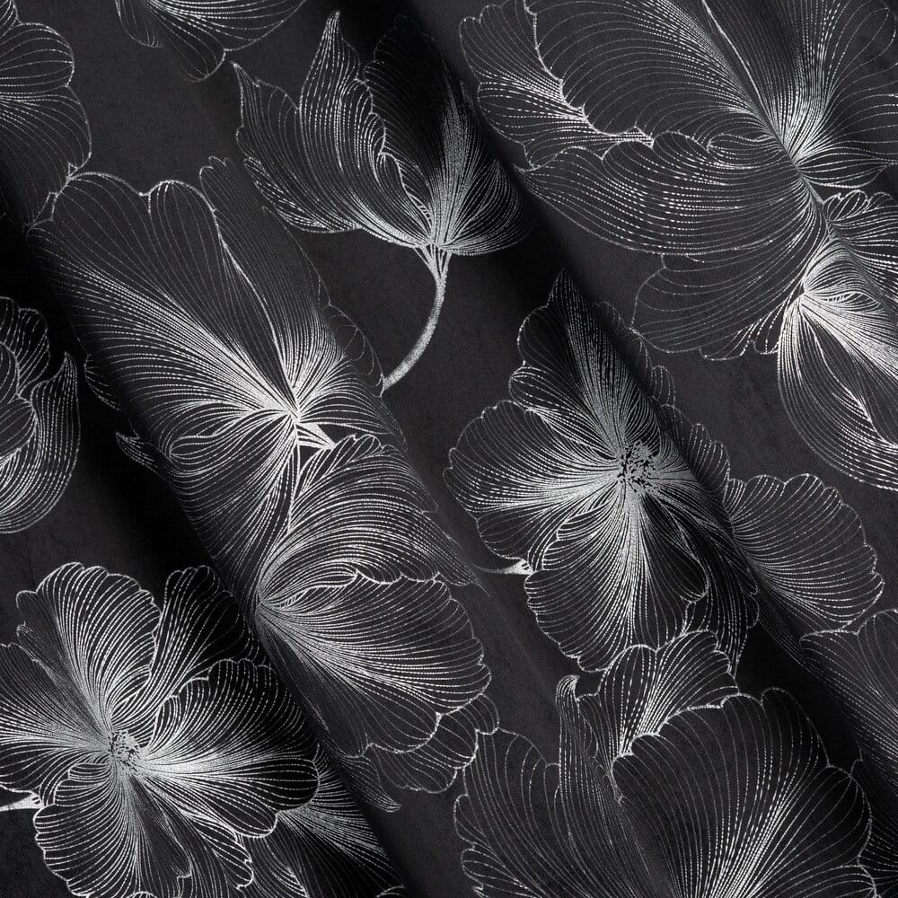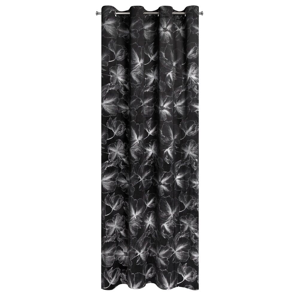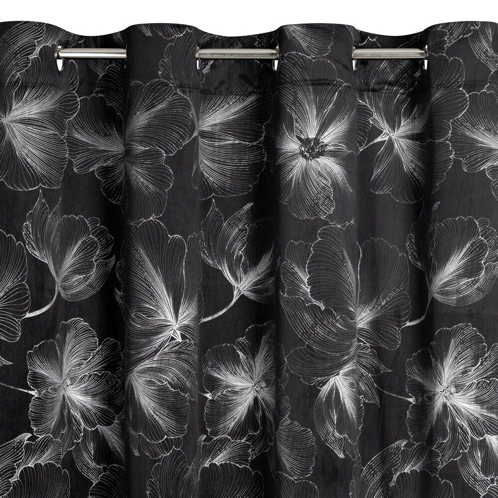 Zasłona welwetowa ze srebrnym nadrukiem szerokość: 140 cm, długość: 250 cm, kolor: czarny, Gramatura: 200 GSM, Skład: 100% poliester